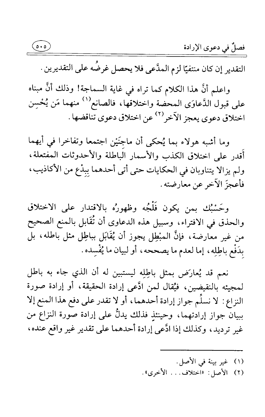 واعلم أنَّ هذا الكلام كما تراه في غاية السماجة وذلك أنَّ مبناه على قبول الدَّعاوَى المحضة واختلاقها فالصانع مَن يُحْسِن اختلاق دعوى يعجز الآخر عن اختلاق دعوى تناقضها