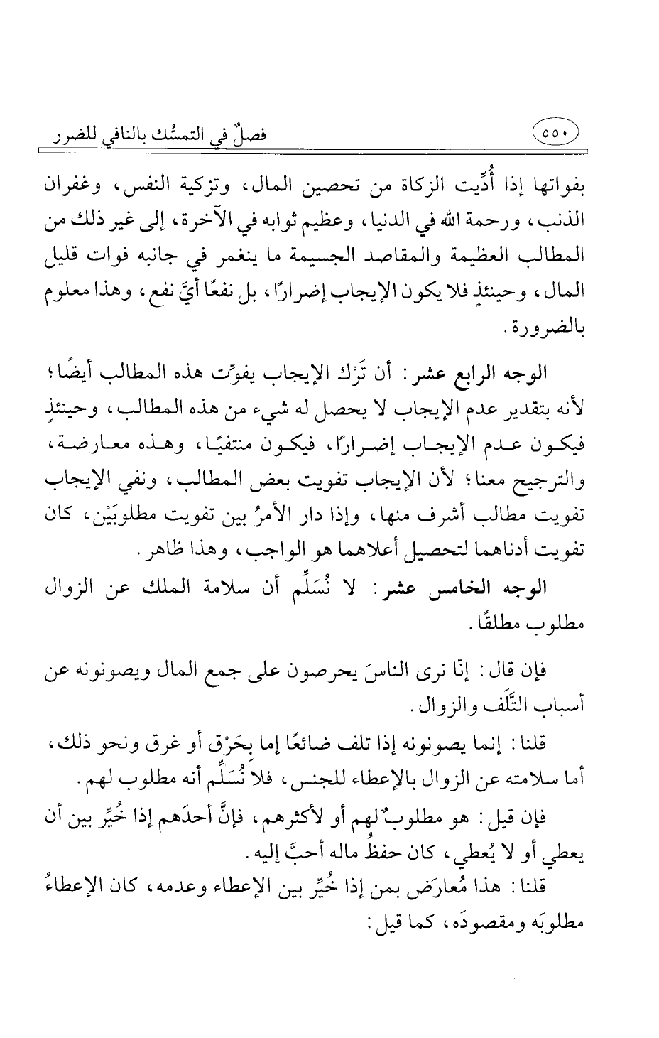 الوجه الخامس عشر لا نُسَلِّم أن سلامة الملك عن الزوال مطلوب مطلقًا