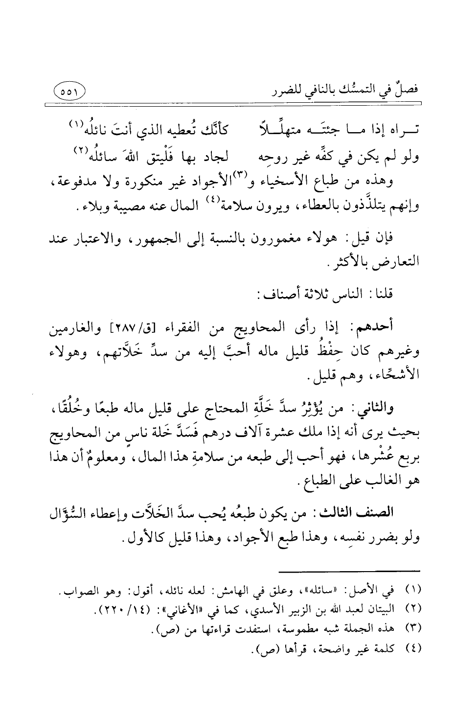الصنف الثالث من يكون طبعُه يُحب سدَّ الخَلاَّت وإعطاء السُّؤَّال ولو بضرر نفسِه وهذا طبع الأجواد وهذا قليل كالأول