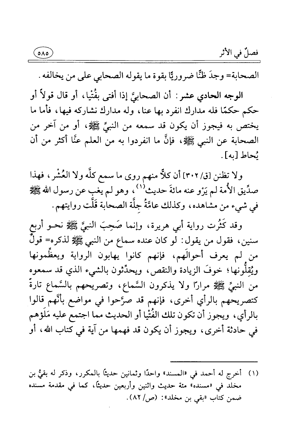 الوجه الحادي عشر أن الصحابيَّ إذا أفتى بفُتْيا أو قال قولاً أو حكم حكمًا فله مدارك انفرد بها عنا وله مدارك نشاركه فيها فأما ما يختص به فيجوز أن يكون قد سمعه من النبيِّ صلى الله عليه وسلم أو من آخر من الصحابة عن النبي صلى الله عليه وسلم فإنَّ ما انفردوا به من العلم عنَّا أكثر من أن يُحاط به