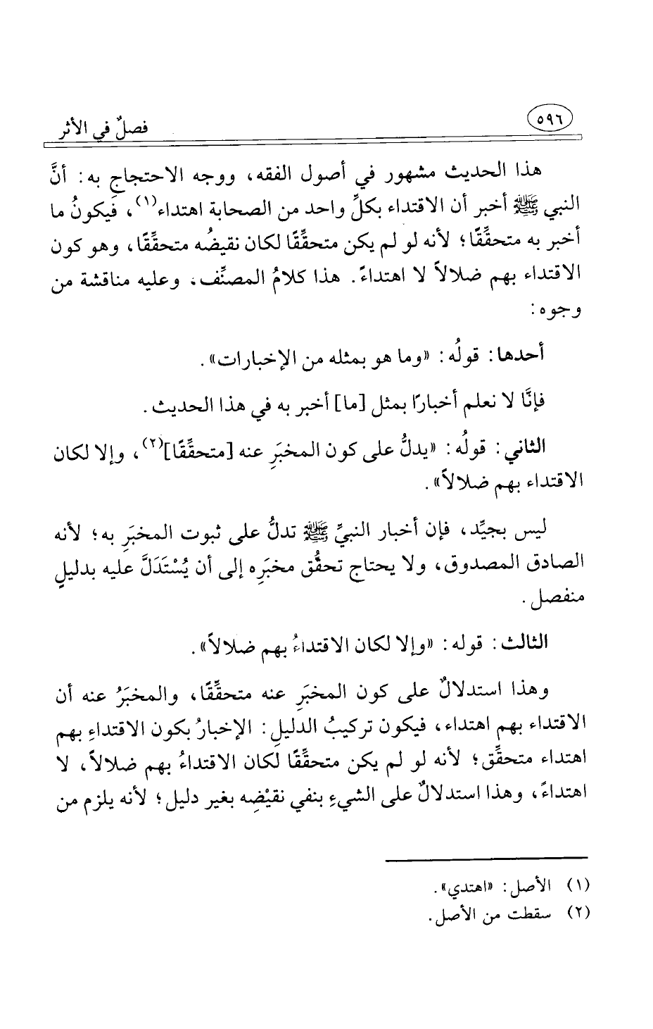 الثاني قولُه يدلُّ على كون المخبَرِ عنه متحقِّقًا وإلا لكان الاقتداء بهم ضلالاً