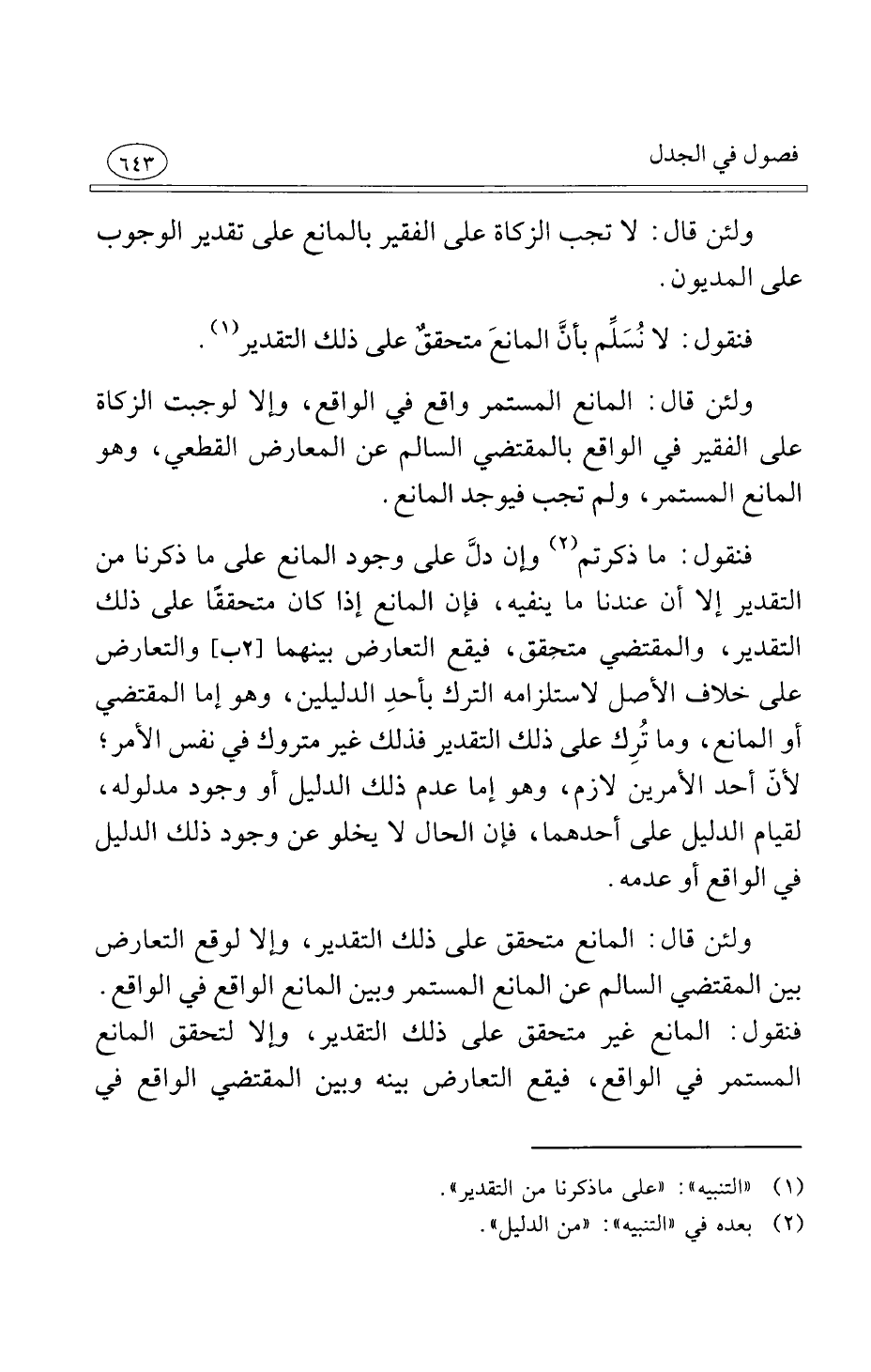 (1) "التنبيه ": "على ماذكرنا من التقدير".