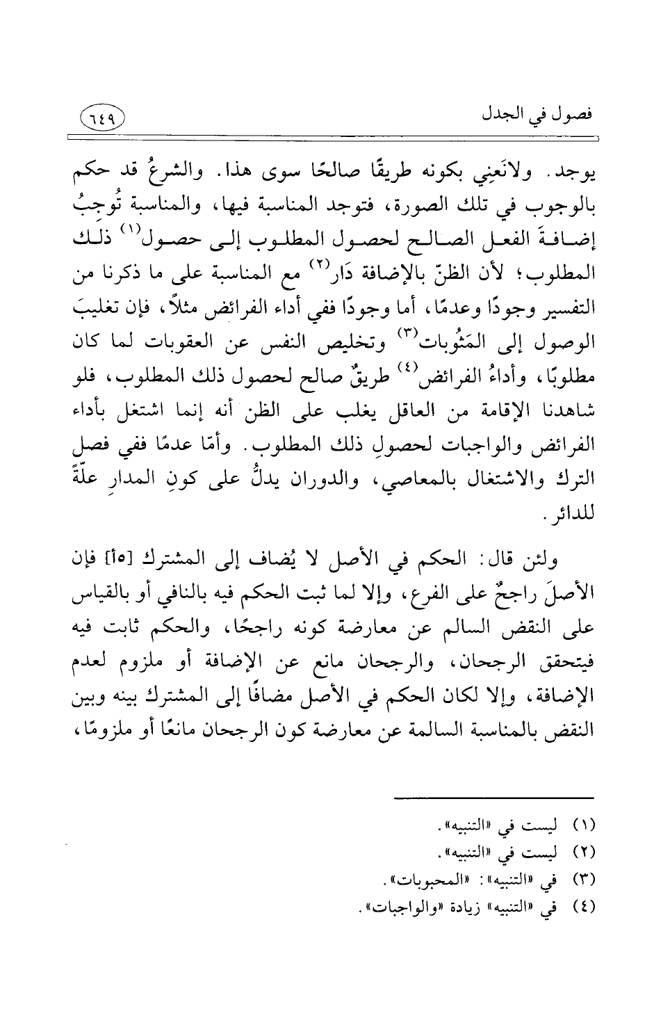 الفرائض والواجبات لحصول ذلك المطلوب. وأنا عدما ففي فصل