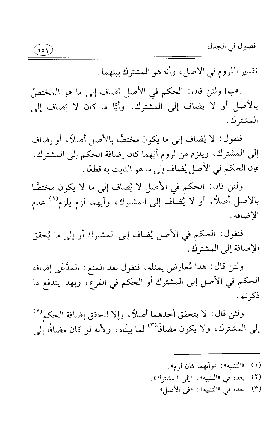 نجالأصل اصلا، او لا يضاف إلى المشترك، وايهما لزم يلزم (1) عدم