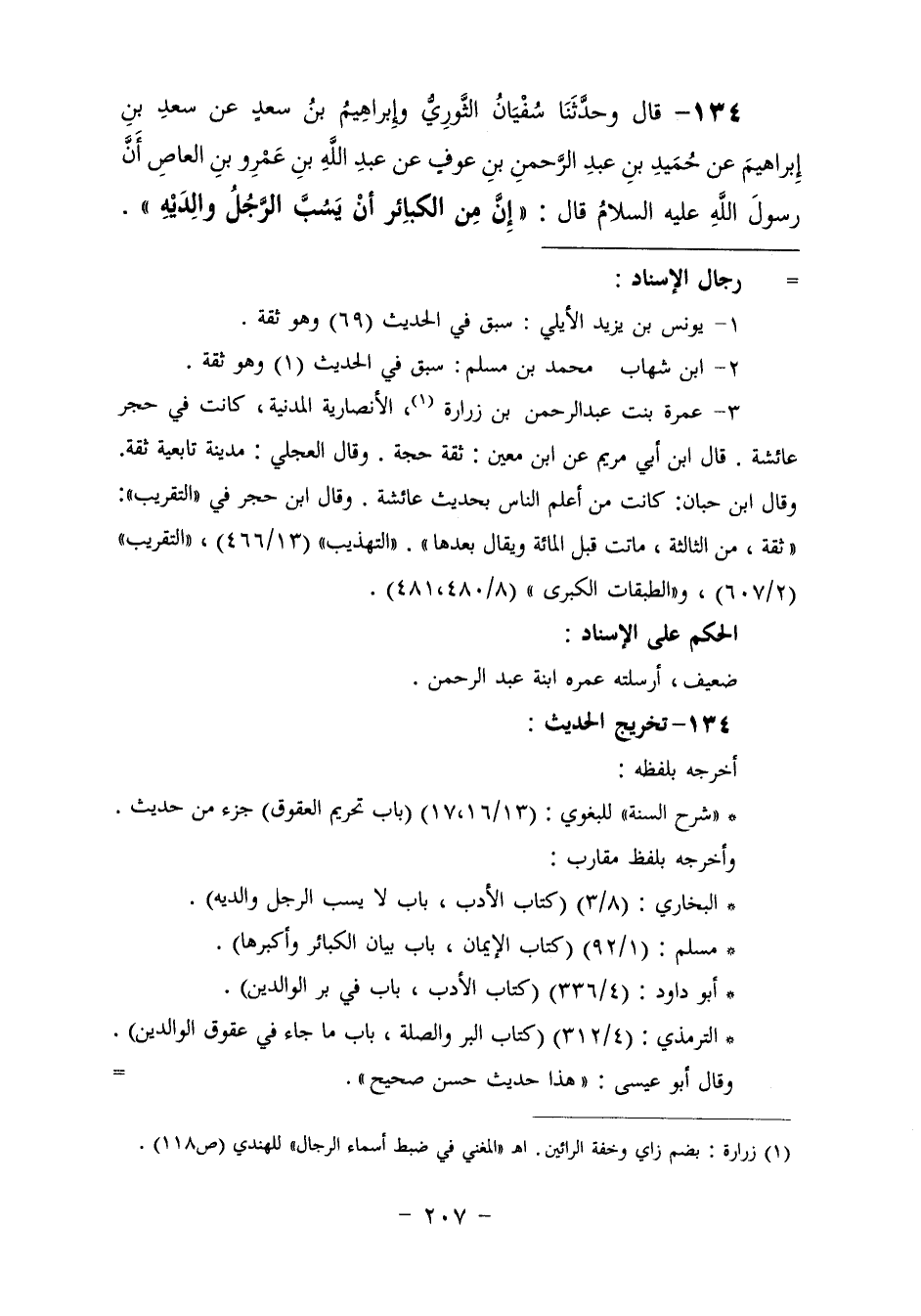 134 - وَحَدَّثَنَا سُفْيَانُ الثَّوْرِيُّ، وَإِبْرَاهِيمُ بْنُ سَعْدٍ، عَنْ سَعْدِ بْنِ إِبْرَاهِيمَ، عَنْ حُمَيْدِ بْنِ عَبْدِ الرَّحْمَنِ بْنِ عَوْفٍ، عَنْ عَبْدِ اللَّهِ بْنِ عَمْرِو بْنِ الْعَاصِ، أَنَّ رَسُولَ اللَّهِ عَلَيْهِ السَّلَامُ قَالَ: «§إِنَّ مِنَ الْكَبَائِرِ أَنْ يَسُبَّ الرَّجُلُ وَالِدَيْهِ»