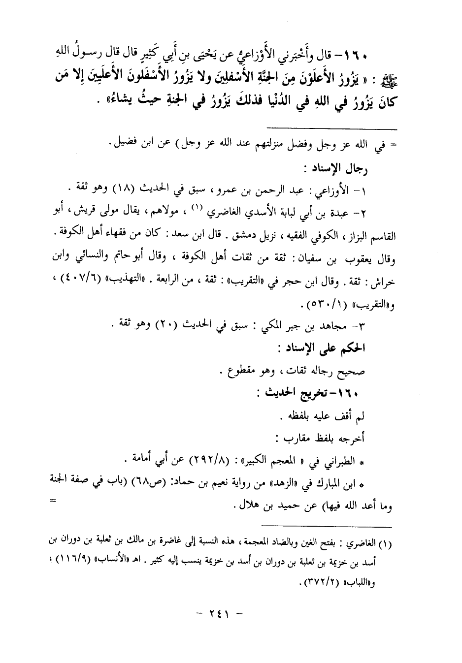 161 - وَأَخْبَرَنِي ابْنُ لَهِيعَةَ، عَنْ شُرَحْبِيلَ بْنِ شَرِيكٍ، عَنْ أَبِي عَبْدِ الرَّحْمَنِ الْحُبُلِيِّ، عَنْ الصُّنَابِحِيّ، عَنْ أَبِي بَكْرٍ الصِّدِّيقِ، قَالَ: «إِنَّ §دَعْوَةَ الْأَخِ فِي اللَّهِ تُسْتَجَابُ»