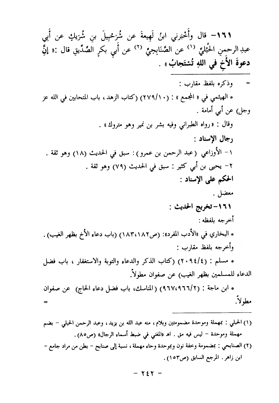 162 - وَحَدَّثَنِي مَسْلَمَةُ بْنُ عُلَيٍّ، عَنْ يَحْيَى بْنِ الْحَارِثِ، عَنِ الْقَاسِمِ بْنِ عَبْدِ الرَّحْمَنِ، عَنْ أَبِي أُمَامَةَ، يَرْفَعُهُ قَالَ: «§مَا مِنْ عَبْدٍ يَزُورُ أَخَاهُ فِي اللَّهِ إِلَّا أَكْرَمَ رَبَّهُ»