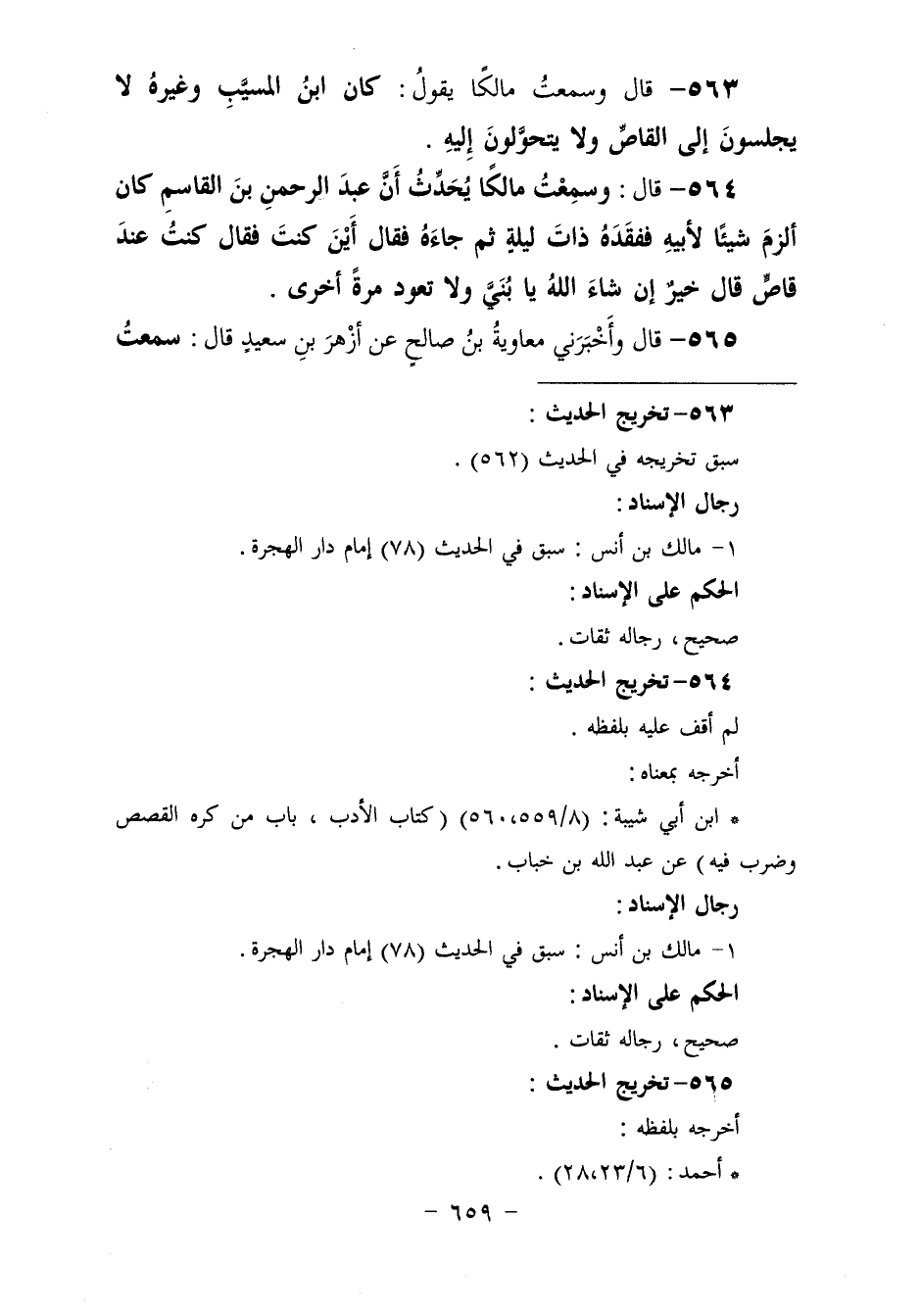 563 - وَسَمِعْتُ مَالِكًا، يَقُولُ: «§كَانَ ابْنُ الْمُسَيِّبِ وَغَيْرُهُ لَا يَجْلِسُونَ إِلَى الْقَاصِّ وَلَا يَتَحَوَّلُونَ إِلَيْهِ»
