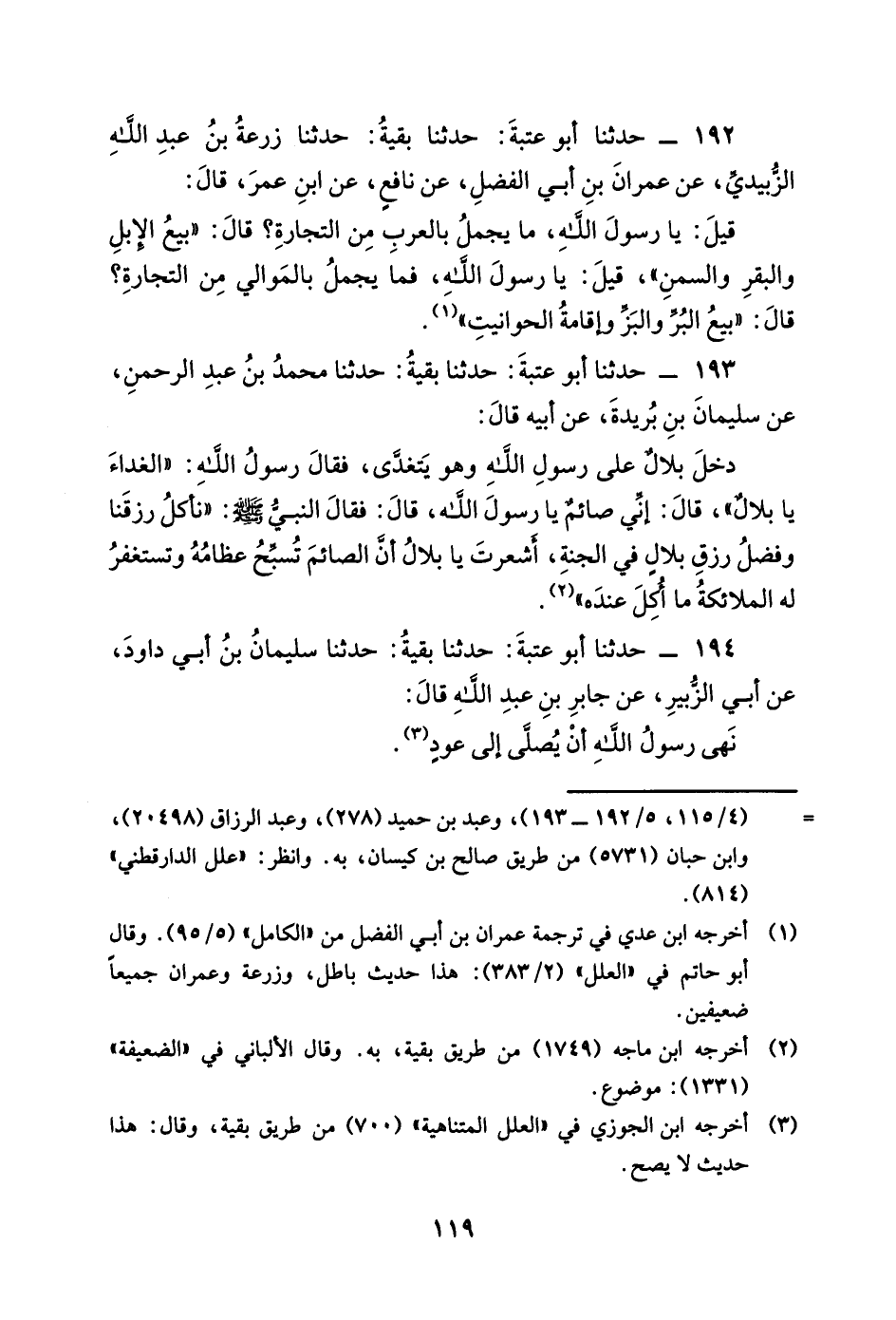 192 - حدثنا أبوعتبة حدثنا بقية حدثنا زُرْعَةُ بْنُ عَبْدِ اللَّهِ الزُّبَيْدِيُّ عَنْ عِمْرَانَ بْنِ أَبِي الْفَضْلِ عَنْ نَافِعٍ عَنِ ابْنِ عُمَرَ قَالَ
