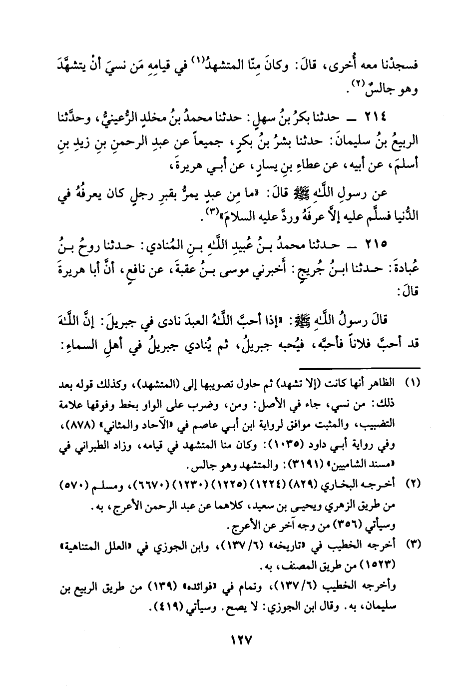 215 - حَدَّثَنَا مُحَمَّدُ بْنُ عُبَيْدِ اللَّهِ بْنِ الْمُنَادَى حدثنا روح بن عبادة حدثنا ابْنُ جُرَيْجٍ أَخْبَرَنِي مُوسَى بْنُ عُقْبَةَ عَنْ نَافِعٍ أَنَّ أَبَا هُرَيْرَةَ قَالَ