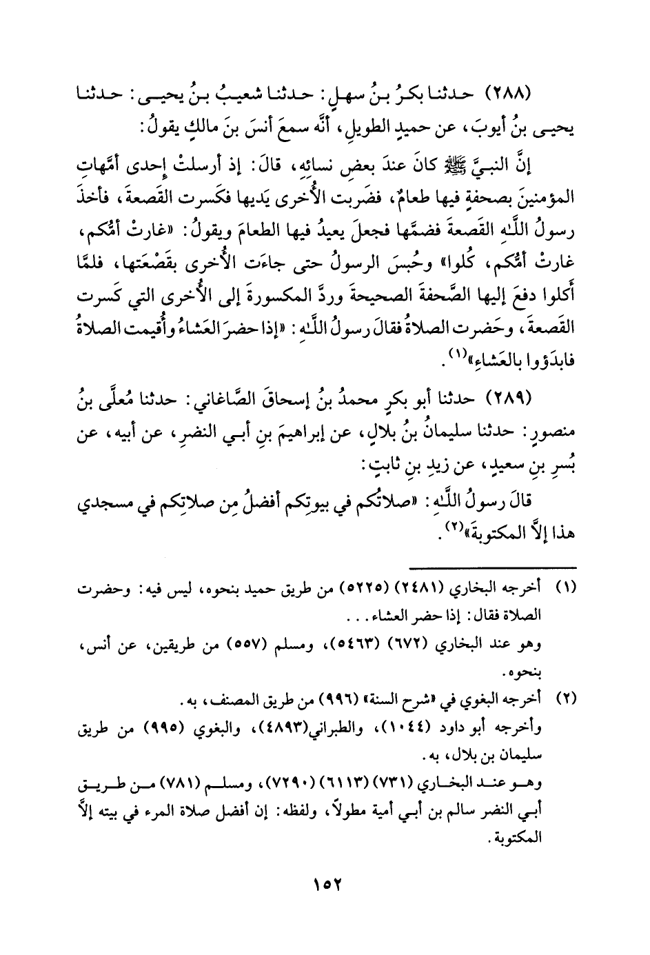 289 - حدثنا أبوبكر محمد بن إسحاق الصاغاني حدثنا معلى بن منصور حدثنا سُلَيْمَانُ بْنُ بِلالٍ عَنْ إِبْرَاهِيمَ بْنِ أَبِي النَّضْرِ عَنْ أَبِيهِ عَنْ بُسْرِ بْنِ سَعِيدٍ عَنْ زَيْدِ بْنِ ثَابِتٍ