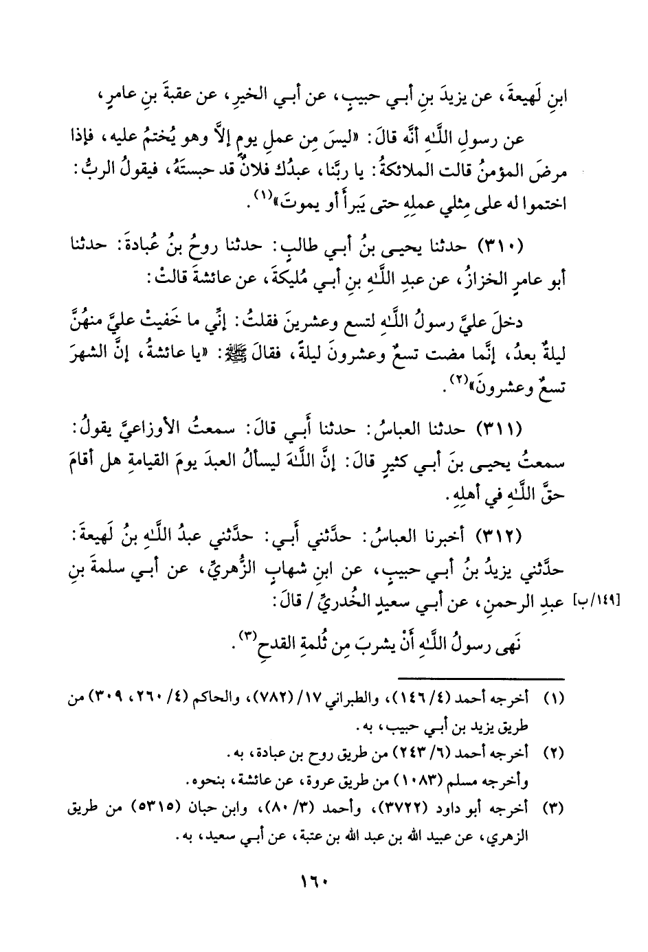 312 - أَخْبَرَنَا الْعَبَّاسُ حَدَّثَنِي أَبِي حَدَّثَنِي عَبْدُ اللَّهِ بْنُ لَهِيعَةَ حَدَّثَنِي يَزِيدُ بْنُ أَبِي حَبِيبٍ عَنِ ابْنِ شِهَابٍ الزُّهْرِيِّ عَنْ أَبِي سَلَمَةَ بْنِ عَبْدِ الرَّحْمَنِ عَنْ أَبِي سَعِيدٍ الْخُدْرِيِّ / قَالَ
