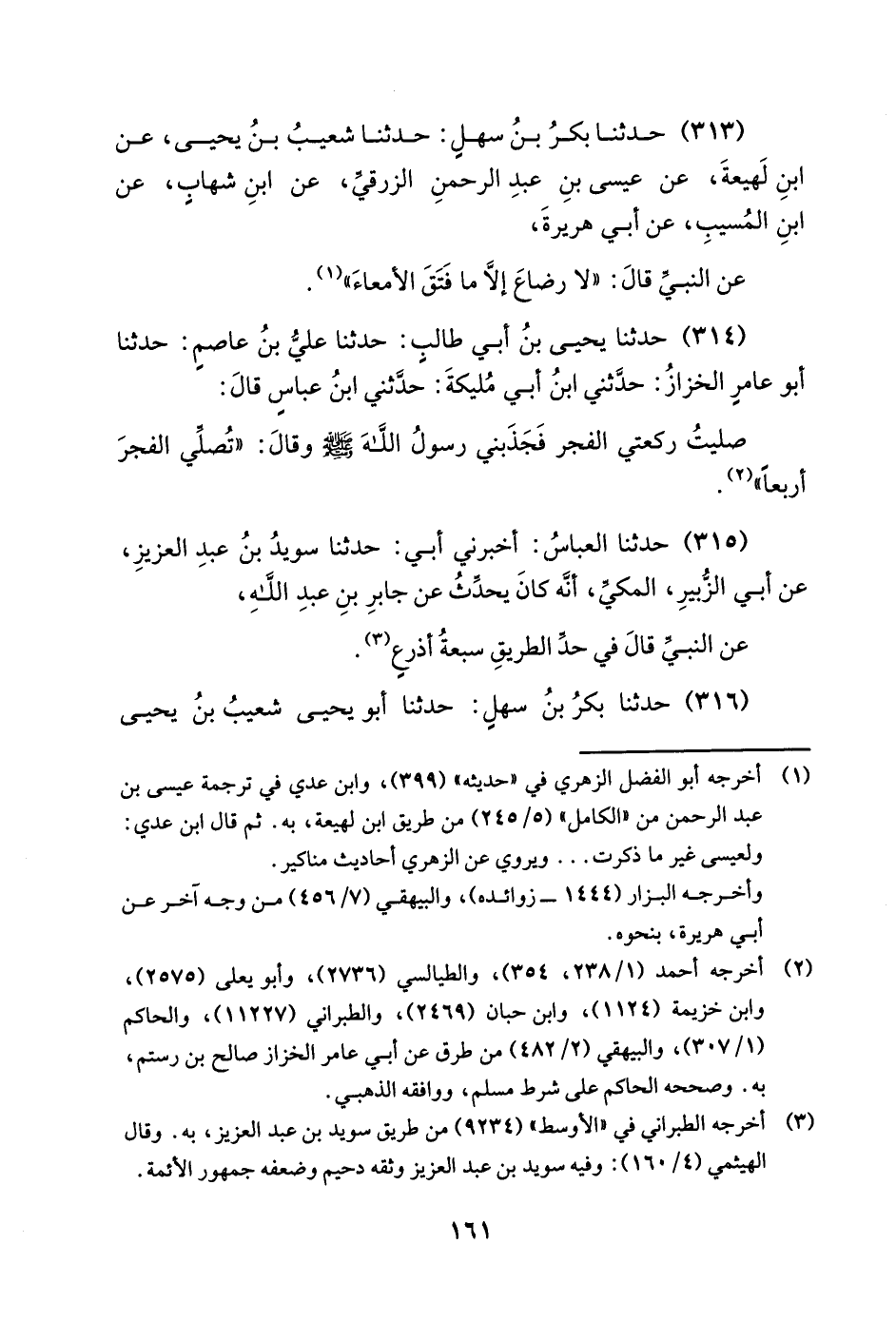 313 - حدثنا بكر بن سهل حدثنا شُعَيْبُ بْنُ يَحْيَى عَنِ ابْنِ لَهِيعَةَ عَنْ عِيسَى بْنُ عَبْدِ الرَّحْمَنِ الزُّرَقي عَنِ ابْنِ شِهَابٍ عَنِ ابْنِ الْمُسَيِّبِ عَنْ أَبِي هُرَيْرَةَ