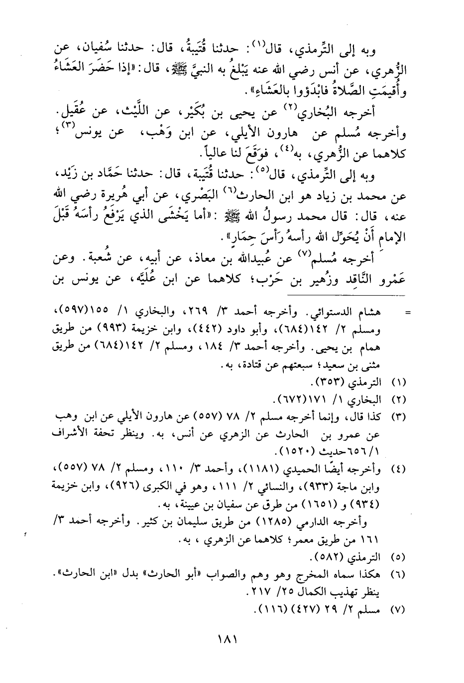 وَبِهِ إِلَى التِّرْمِذِيِّ، قَالَ: حَدَّثَنَا قُتَيْبَةُ، قَالَ: حَدَّثَنَا حَمَّادُ بْنُ زَيْدٍ، عَنْ مُحَمَّدِ بْنِ زِيَادٍ هُوَ ابْنُ الْحَارِثِ الْبَصْرِيُّ، عَنْ أَبِي هُرَيْرَةَ رَضِيَ اللَّهُ عَنْهُ، قَالَ: قَالَ مُحَمَّدٌ رَسُولُ اللَّهِ صَلَّى اللَّهُ عَلَيْهِ وَسَلَّمَ: ((أَمَا يَخْشَى الَّذِي يَرْفَعُ رَأْسَهُ قَبْلَ الإِمَامِ أَنْ يُحَوِّلَ اللَّهُ رَأْسَهُ رَأْسَ حمارٍ)) .