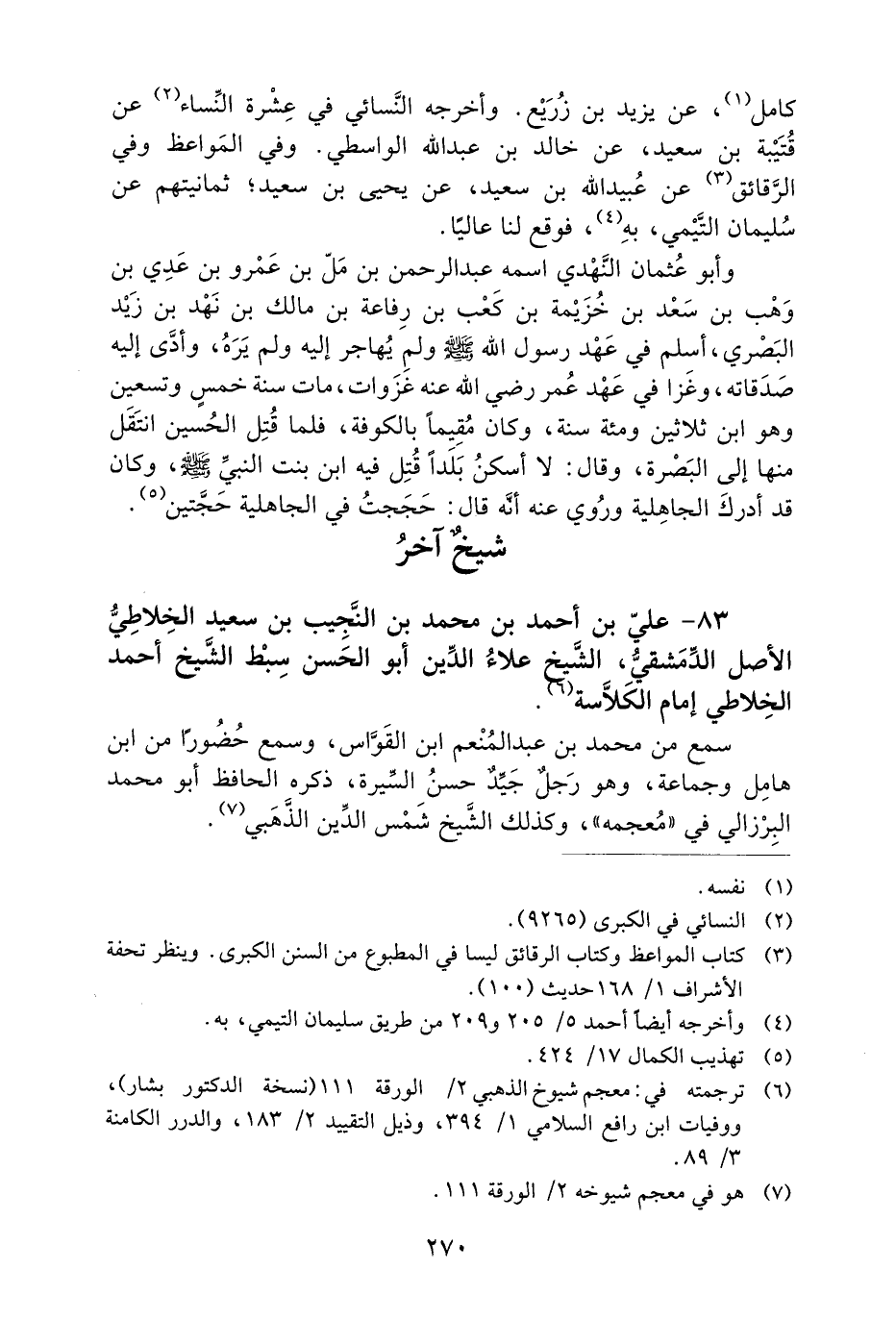 83- عَلِيُّ بْنُ أَحْمَدَ بْنِ مُحَمَّدِ بْنِ النَّجِيبِ بْنِ سَعِيدٍ الْخَلاطِيُّ الأَصْلِ الدِّمَشْقِيُّ، الشَّيْخُ عَلاءُ الدِّينِ أَبُو الْحَسَنِ سِبْطُ الشَّيْخِ أَحْمَدَ الْخَلاطِيِّ إِمَامِ الْكلاسَةِ.