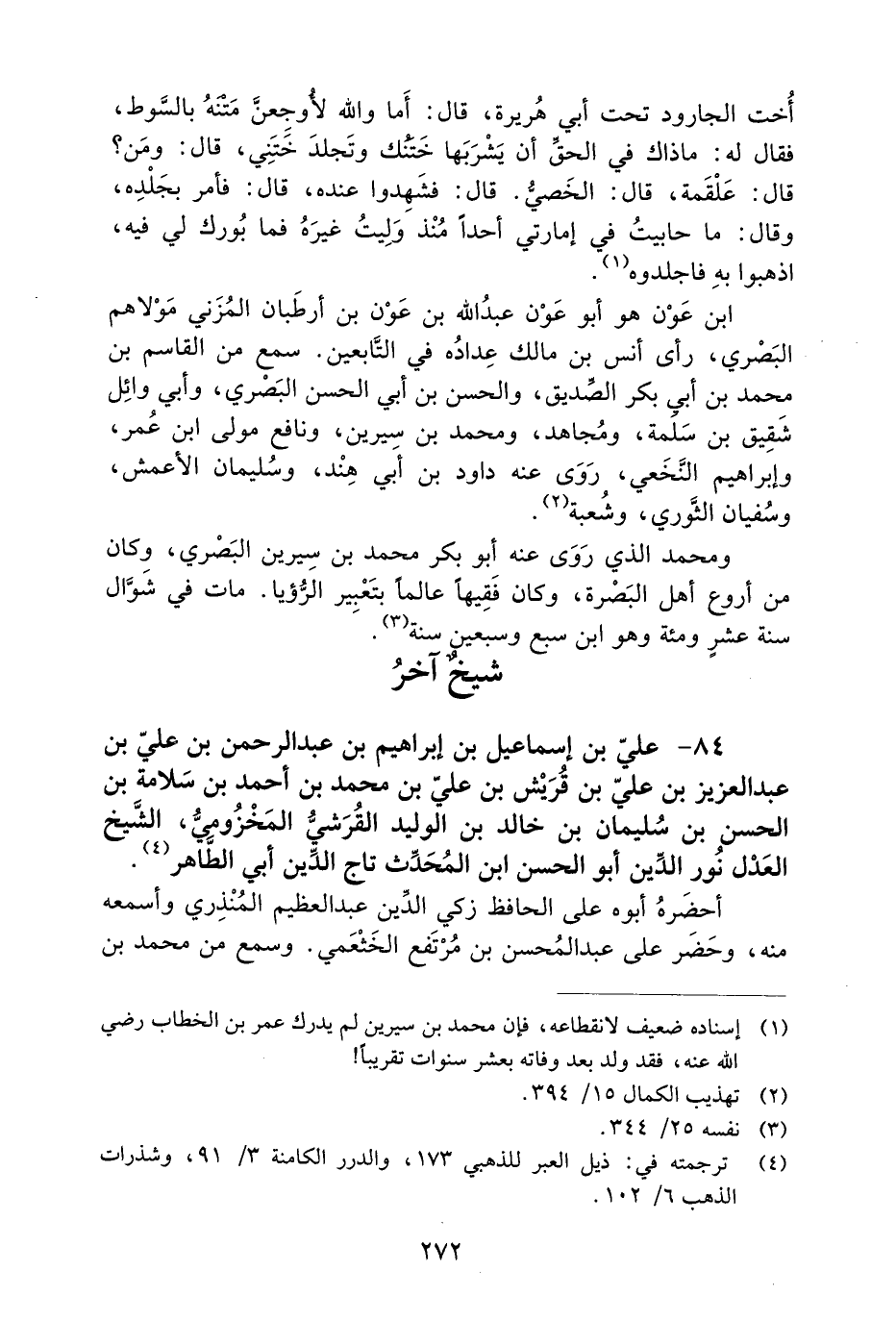 84- عَلِيُّ بْنُ إِسْمَاعِيلَ بْنِ إِبْرَاهِيمَ بْنِ عَبْدِ الرَّحْمَنِ بْنِ عَلِيِّ بْنِ عَبْدِ الْعَزِيزِ بْنِ عَلِيِّ بْنِ قُرَيْشِ بْنِ عَلِيِّ بْنِ مُحَمَّدِ بْنِ أَحْمَدَ بْنِ سَلامَةَ بْنِ الْحَسَنِ بْنِ سُلَيْمَانَ بْنِ خَالِدِ بْنِ الْوَلِيدِ الْقُرَشِيُّ الْمَخْزُومِيُّ، الشَّيْخُ الْعَدْلُ نُورُ الدِّينِ أَبُو الْحَسَنِ ابْنُ الْمُحَدِّثِ تَاجِ الدِّينِ أَبِي الطَّاهِرِ.