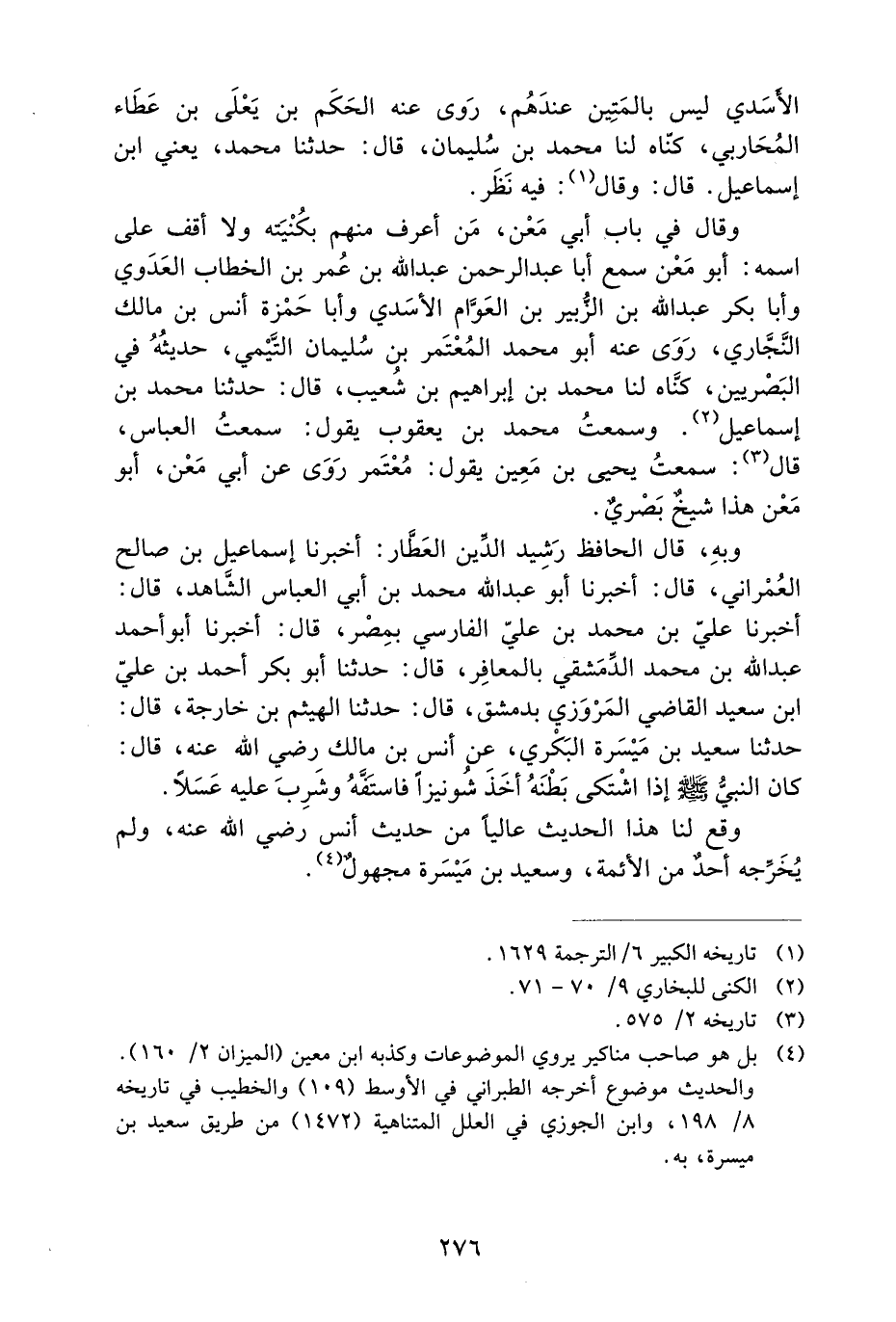 وَقَالَ فِي بَابِ أَبِي مَعْنٍ، مَنْ أَعْرِفُ مِنْهُمْ بِكُنْيَتِهِ وَلا أَقِفُ عَلَى اسْمِهِ: أَبُو مَعْنٍ سَمِعَ أَبَا عَبْدِ الرَّحْمَنِ عَبْدَ اللَّهِ بْنَ عُمَرَ بْنِ الْخَطَّابِ الْعَدَوِيَّ وَأَبَا بَكْرٍ عَبْدَ اللَّهِ بْنَ الزُّبَيْرِ بْنِ الْعَوَّامِ الأَسَدِيَّ وَأَبَا حَمْزَةَ أَنَسَ بْنَ مَالِكٍ النَّجَّارِيَّ، رَوَى عَنْهُ أَبُو مُحَمَّدٍ الْمُعْتَمِرُ بْنُ سُلَيْمَانَ التَّيْمِيُّ، حَدِيثَهُ فِي الْبَصْرِيِّينَ، كَنَّاهُ لَنَا مُحَمَّدُ بْنُ إِبْرَاهِيمَ بْنِ شُعَيْبٍ، قَالَ: حَدَّثَنَا مُحَمَّدُ بْنُ إِسْمَاعِيلَ. وَسَمِعْتُ مُحَمَّدَ بْنَ يَعْقُوبَ يَقُولُ: سَمِعْتُ الْعَبَّاسَ، قَالَ: سَمِعْتُ يَحْيَى بْنَ مَعِينٍ يَقُولُ: مُعْتَمِرٌ روى عن أبي معن، أبو مَعْنٍ هَذَا شيخٌ بَصْرِيٌّ.