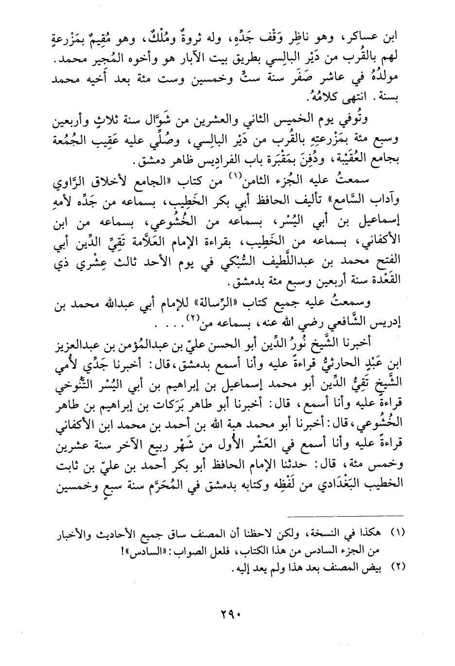 وَسَمِعْتُ عَلَيْهِ جَمِيعَ كِتَابِ ((الرِّسَالَةِ)) لِلإِمَامِ أَبِي عَبْدِ اللَّهِ مُحَمَّدِ بْنِ إِدْرِيسَ الشَّافِعِيِّ رَضِيَ اللَّهُ عَنْهُ، بِسَمَاعِهِ مِن.. ..