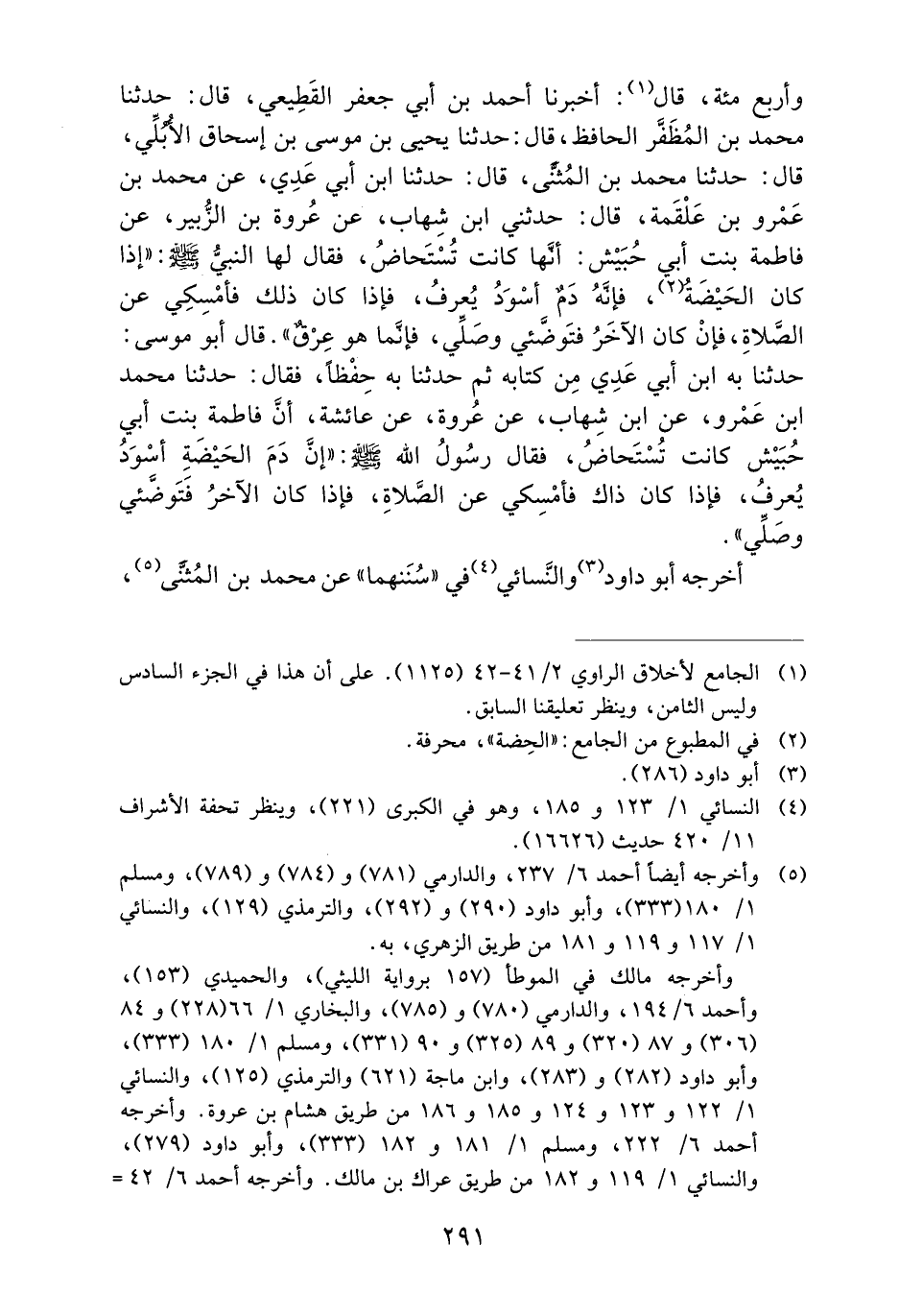 وأربع مئة، قَالَ: أَخْبَرَنَا أَحْمَدُ بْنُ أَبِي جَعْفَرٍ الْقَطِيعِيُّ، قَالَ: حَدَّثَنَا مُحَمَّدُ بْنُ الْمُظَفَّرِ الْحَافِظُ، قَالَ: حَدَّثَنَا يَحْيَى بْنُ مُوسَى بْنِ إِسْحَاقَ الأُبُلِّيُّ، قَالَ: حَدَّثَنَا مُحَمَّدُ بْنُ الْمُثَنَّى، قَالَ: حَدَّثَنَا ابْنُ أَبِي عَدِيٍّ، عَنْ مُحَمَّدِ بْنِ عَمْرِو بْنِ عَلْقَمَةَ، قَالَ: حَدَّثَنِي ابْنُ شِهَابٍ، عَنْ عُرْوَةَ بْنِ الزُّبَيْرِ، عَنْ فَاطِمَةَ بِنْتِ أَبِي حُبَيْشٍ: أَنَّهَا كَانَتْ تُسْتَحَاضُ، فَقَالَ لَهَا النَّبِيُّ صَلَّى اللَّهُ عَلَيْهِ وَسَلَّمَ: ((إِذَا كَانَ الْحَيْضَةَ، فَإِنَّهُ دمٌ أَسْوَدُ يُعْرَفُ، فَإِذَا كَانَ ذَلِكَ فَأَمْسِكِي عَنِ الصَّلاةِ، فَإِنْ كَانَ الآخَرَ فَتَوَضَّئِي وَصَلِّي، فَإِنَّمَا هُوَ عرقٌ)) . قَالَ أَبُو مُوسَى: حَدَّثَنَا بِهِ ابْنُ أَبِي عَدِيٍّ مِنْ كِتَابِهِ ثُمَّ حَدَّثَنَا بِهِ حِفْظًا، فَقَالَ: حَدَّثَنَا مُحَمَّدُ بْنُ عَمْرٍو، عَنِ ابْنِ شِهَابٍ، عَنْ عُرْوَةَ، عَنْ عَائِشَةَ، أَنَّ فَاطِمَةَ بِنْتَ أَبِي حُبَيْشٍ كَانَتْ تُسْتَحَاضُ، فَقَالَ رَسُولُ اللَّهِ صَلَّى اللَّهُ عَلَيْهِ وَسَلَّمَ: ((إِنَّ دَمَ الْحَيْضَةِ أَسْوَدُ يُعْرَفُ، فَإِذَا كَانَ ذَاكَ فَأَمْسِكِي عَنِ الصَّلاةِ، فَإِذَا كَانَ الآخَرَ فَتَوَضَّئِي وَصَلِّي)) .
