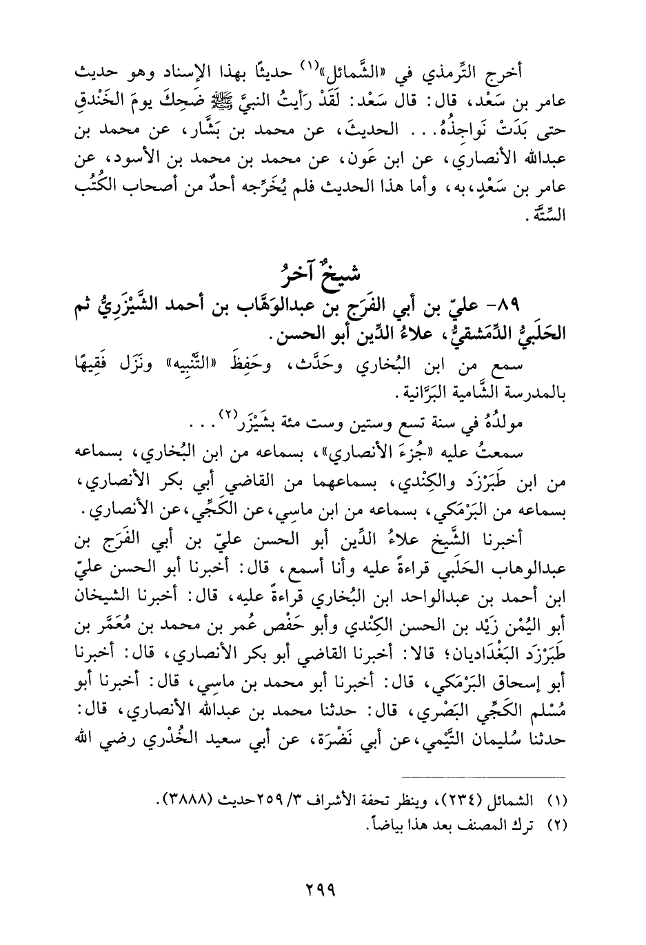 89- عَلِيُّ بْنُ أَبِي الْفَرَجِ بْنِ عَبْدِ الْوَهَّابِ بْنِ أَحْمَدَ الشَّيْزَرِيُّ ثُمَّ الْحَلَبِيُّ الدِّمَشْقِيُّ، عَلاءُ الدِّينِ أَبُو الْحَسَنِ.