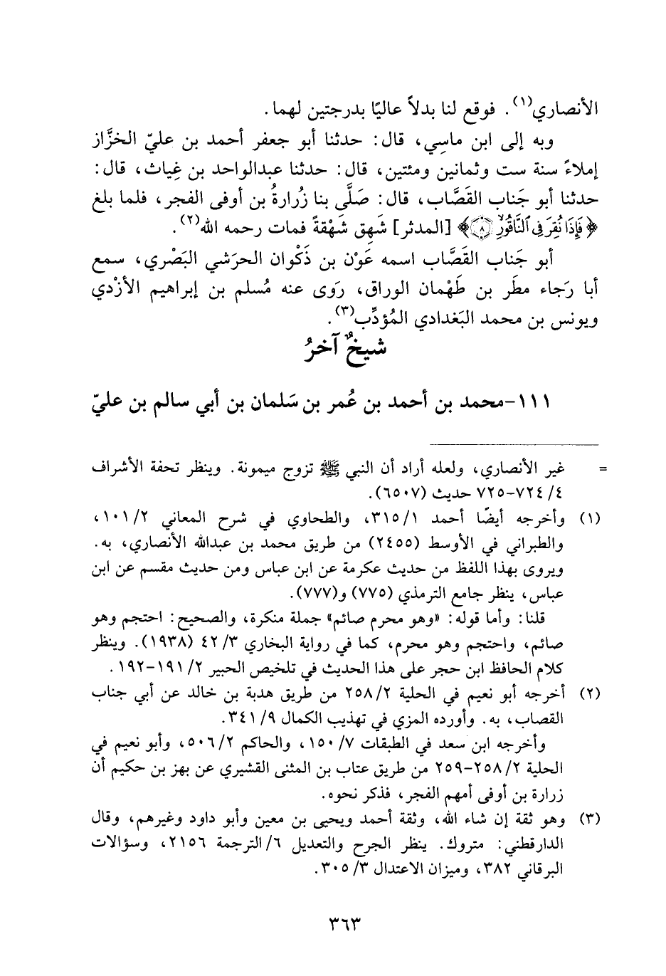111- مُحَمَّدُ بْنُ أَحْمَدَ بْنِ عُمَرَ بْنِ سَلْمَانَ بْنِ أَبِي سَالِمِ بْنِ عَلِيٍّ الْبَالِسِيُّ الأَصْلِ الصَّالِحِيُّ، الشيخ أَبُو عَبْدِ اللَّهِ الْقَطَّانُ.