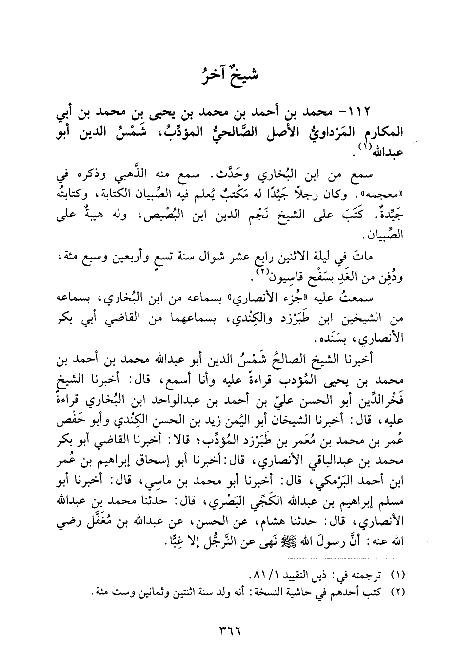 112- مُحَمَّدُ بْنُ أَحْمَدَ بْنِ مُحَمَّدِ بْنِ يَحْيَى بْنِ مُحَمَّدِ بْنِ أَبِي الْمَكَارِمِ الْمَرْدَاوِيُّ الأَصْلِ الصَّالِحِيُّ الْمُؤَدِّبُ، شَمْسُ الدِّينِ أَبُو عَبْدِ اللَّهِ.