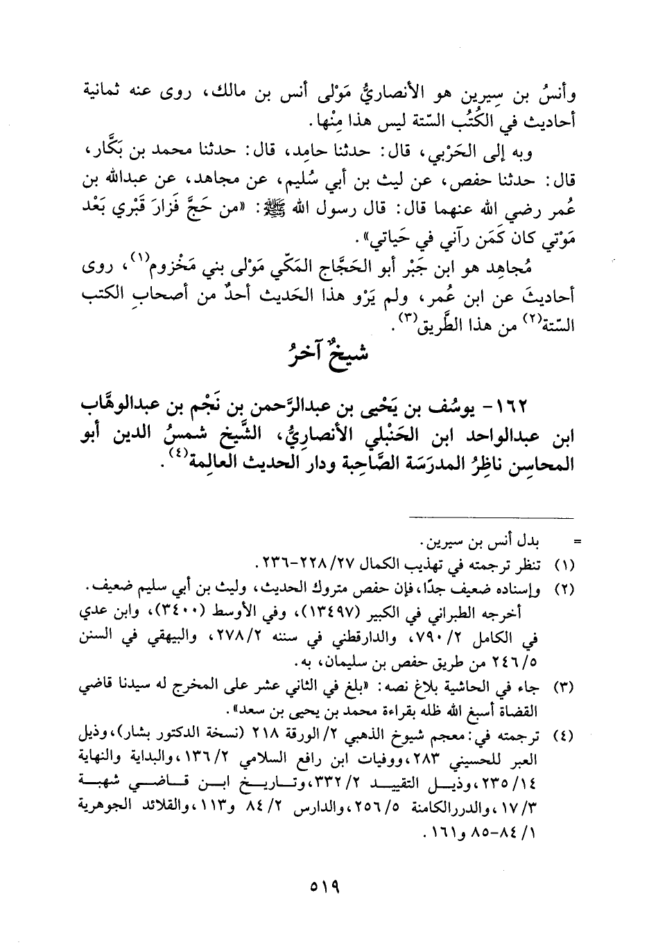 162- يُوسُفُ بْنُ يَحْيَى بْنِ عَبْدِ الرَّحْمَنِ بن نجم بن عبد الوهاب ابن عَبْدِ الْوَاحِدِ ابْنِ الْحَنْبَلِيِّ الأَنْصَارِيُّ، الشَّيْخُ شَمْسُ الدِّينِ أَبُو الْمَحَاسِنِ نَاظِرُ الْمَدْرَسَةِ الصَّاحِبَةِ وَدَارِ الحديث العالمة.