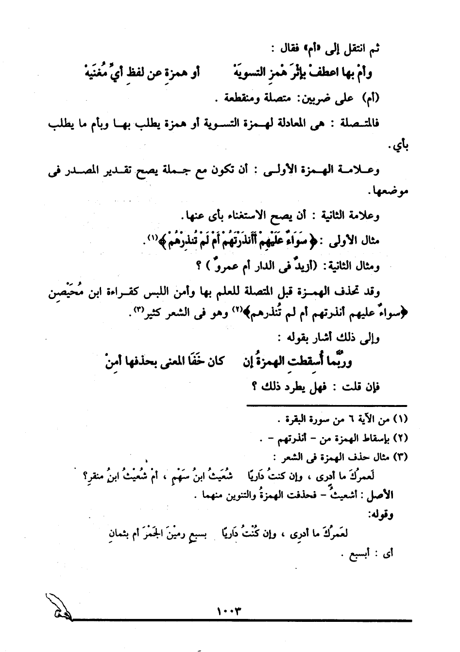 مثال الأولى: {سَوَاءٌ عَلَيْهِمْ أَأَنْذَرْتَهُمْ أَمْ لَمْ تُنْذِرْهُمْ} 1.
