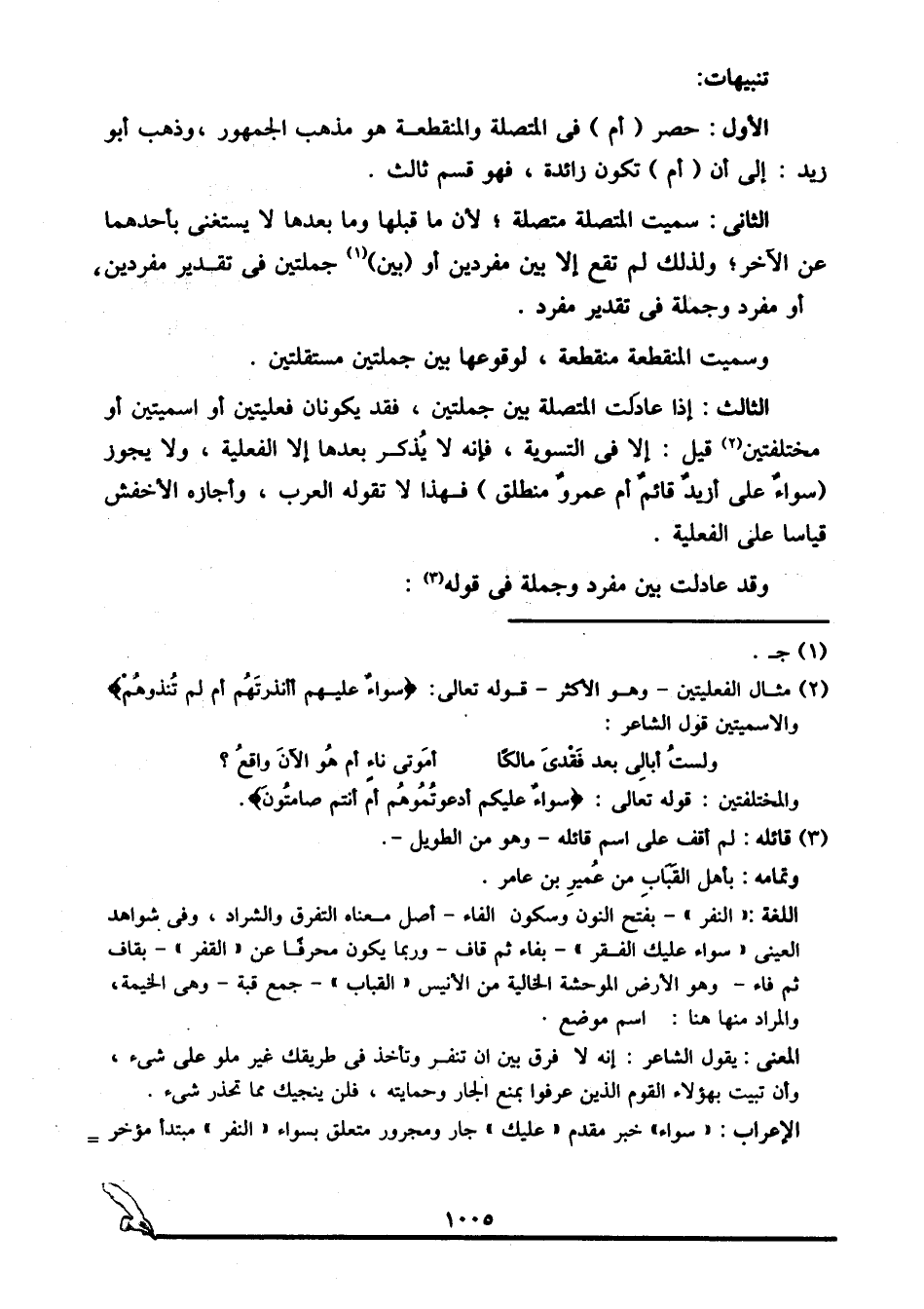 الأول: حصر "أم" في المتصلة والمنقطعة هو مذهب الجمهور، وذهب أبو زيد إلى أن "أم" تكون زائدة، فهو قسم ثالث.