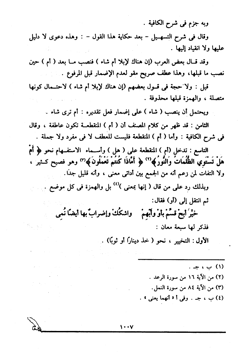 التاسع: تدخل "أم" المنقطعة على "هل" وأسماء الاستفهام نحو: {أَمْ هَلْ تَسْتَوِي الظُّلُمَاتُ وَالنُّورُ} 2, {أَمْ مَاذَا كُنْتُمْ تَعْمَلُونَ} 3 وهو فصيح كثير، ولا التفات لمن زعم أنه من الجمع بين أداتي معنى، وأنه قليل جدا.