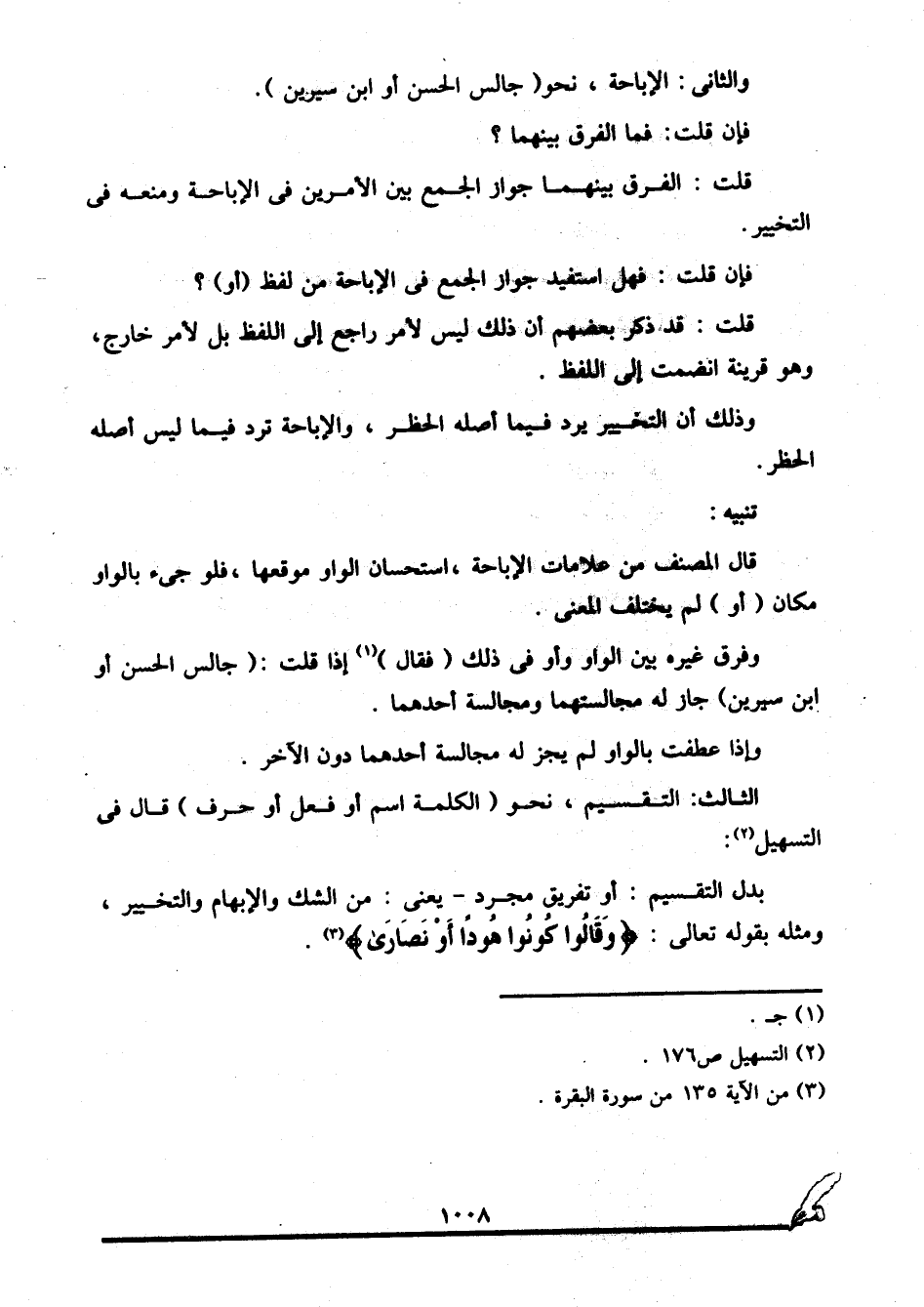 والثاني: الإباحة، نحو: "جالس الحسن أو ابن سيرين".
