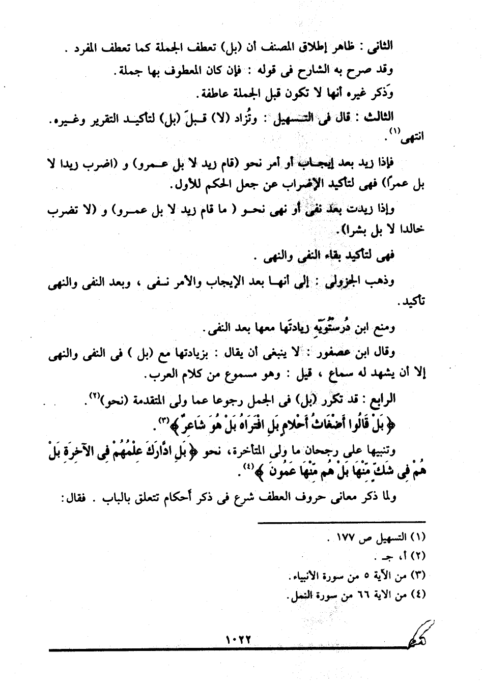 الرابع: قد تكرر "بل" في الجمل رجوعا عما ولي المتقدمة "نحو"2:
