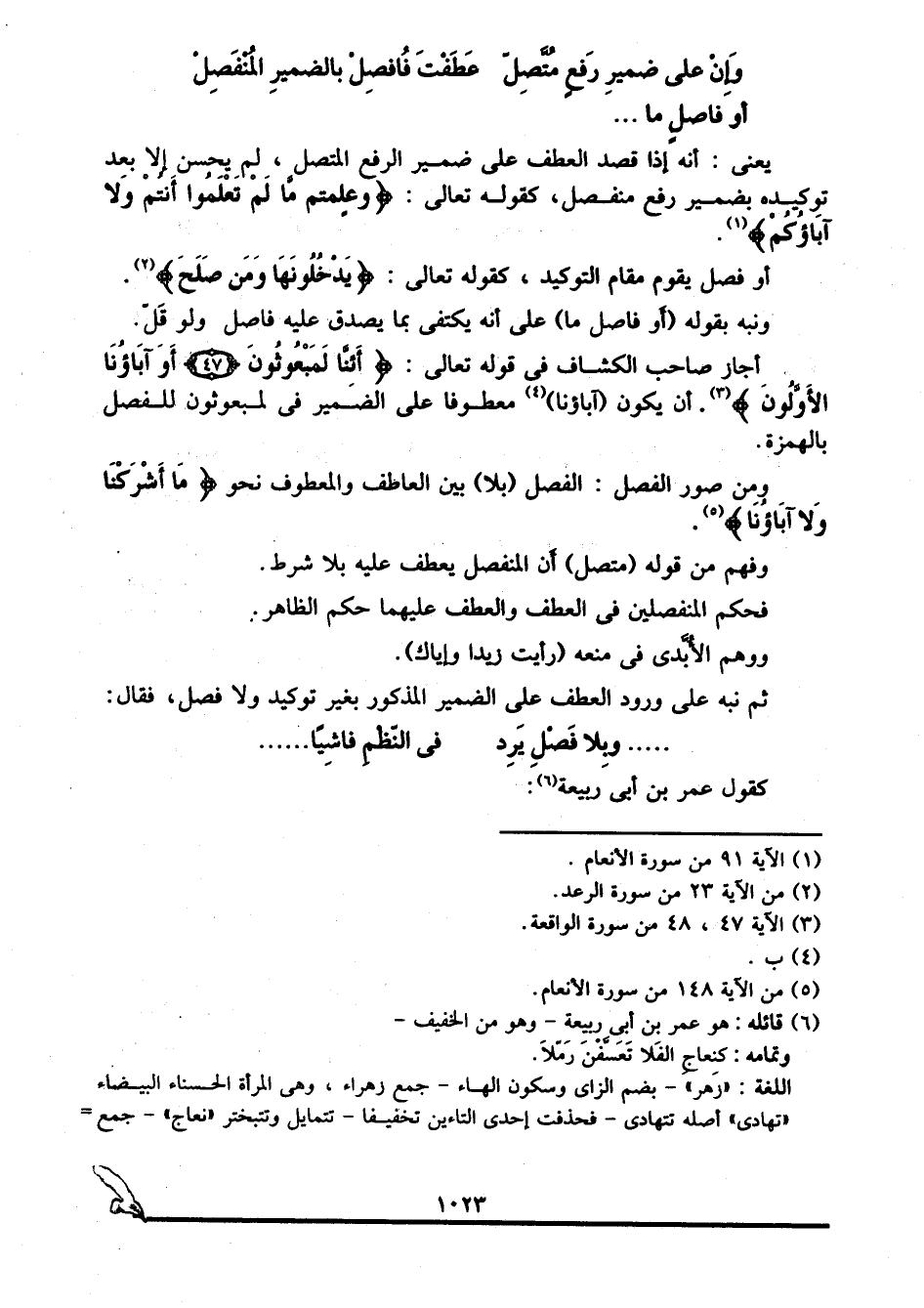 ومن صور الفصل: الفصل "بلا" بين العاطف والمعطوف نحو: {مَا أَشْرَكْنَا وَلَا آبَاؤُنَا} 5.