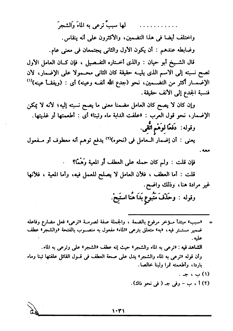 الشاهد فيه: "ترعى به الماء والشجر" حيث إنه عطف "الشجر" على وترعى به الماء.