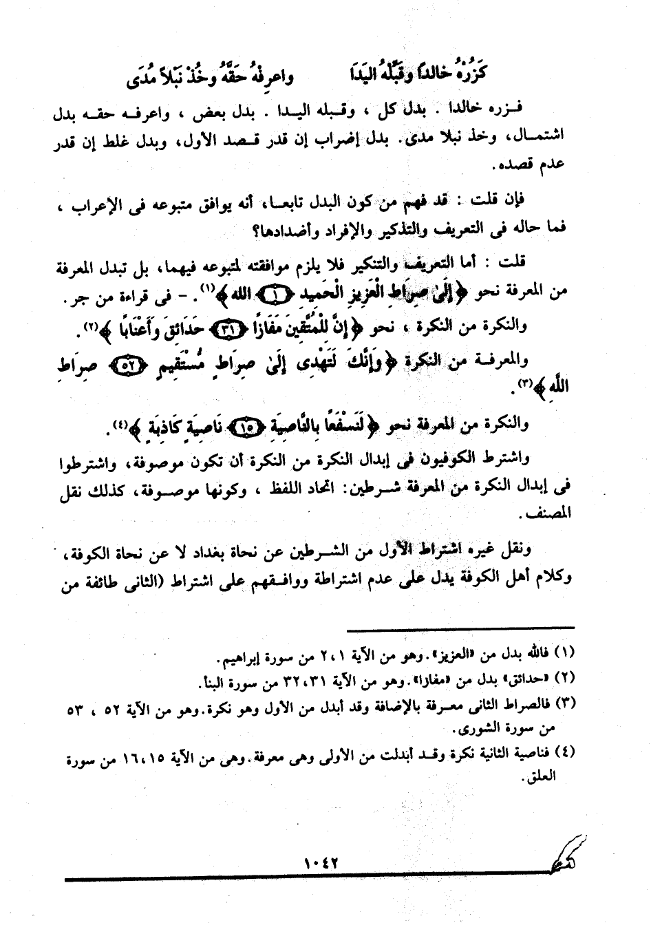 3 فالصراط الثاني معرفة بالإضافة, وقد أبدل من الأول وهو نكرة, وهو من الآية 52، 53 من سورة الشورى.