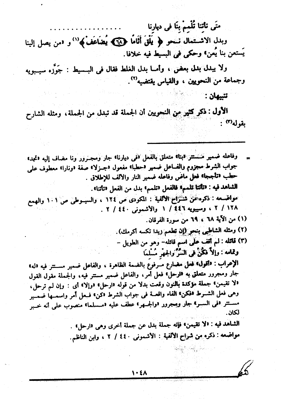 الأول: ذكر كثير من النحويين أن الجملة قد تبدل من الجملة، ومثله الشارح بقوله3: