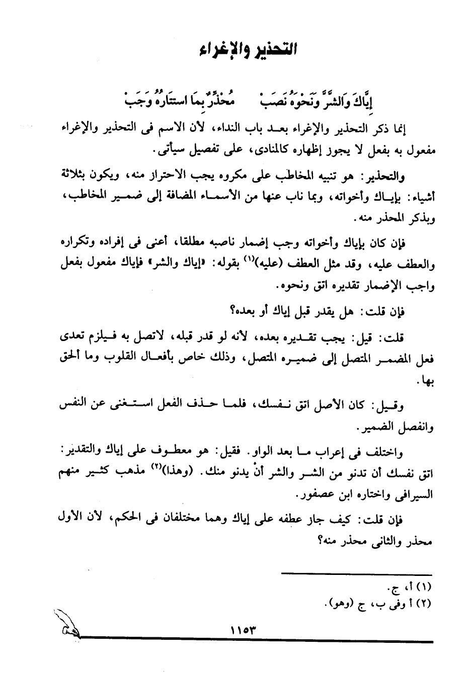إياك والشرَّ ونحوَه نَصَبْ ... مُحذِّرٌ بما استتارُه وَجَبْ