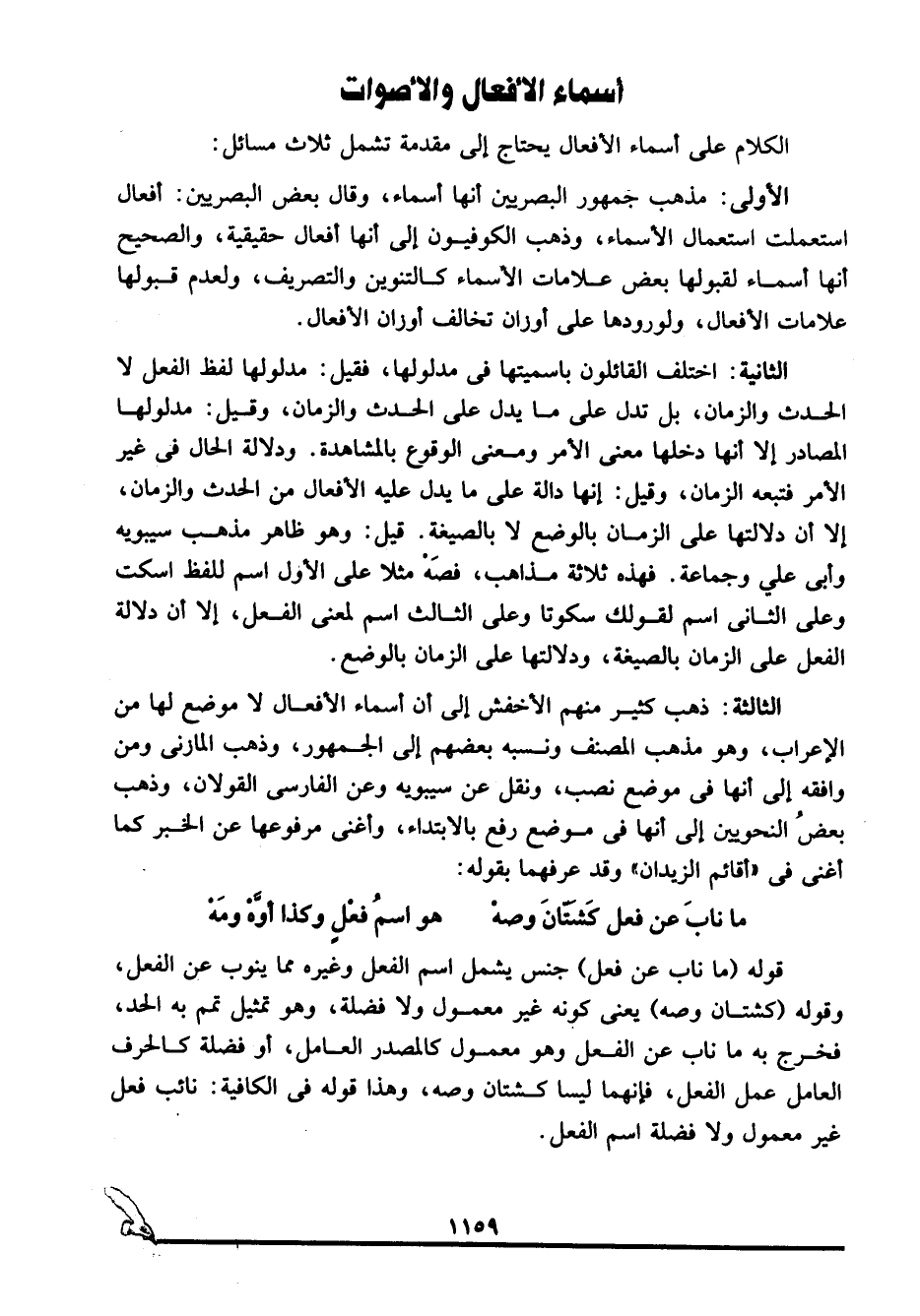 الكلام على أسماء الأفعال يحتاج إلى مقدمة تشمل ثلاث مسائل: