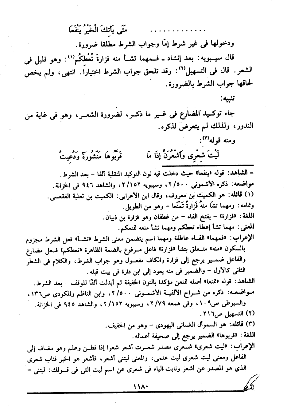 مواضعه: ذكره من شراح الألفية: الأشموني 500/ 2، وابن الناظم والمكودي ص136، والسيوطي ص109، وفي همعه 79/ 2، وسيبويه 152/ 2، والشاهد 945 في الخزانة.
