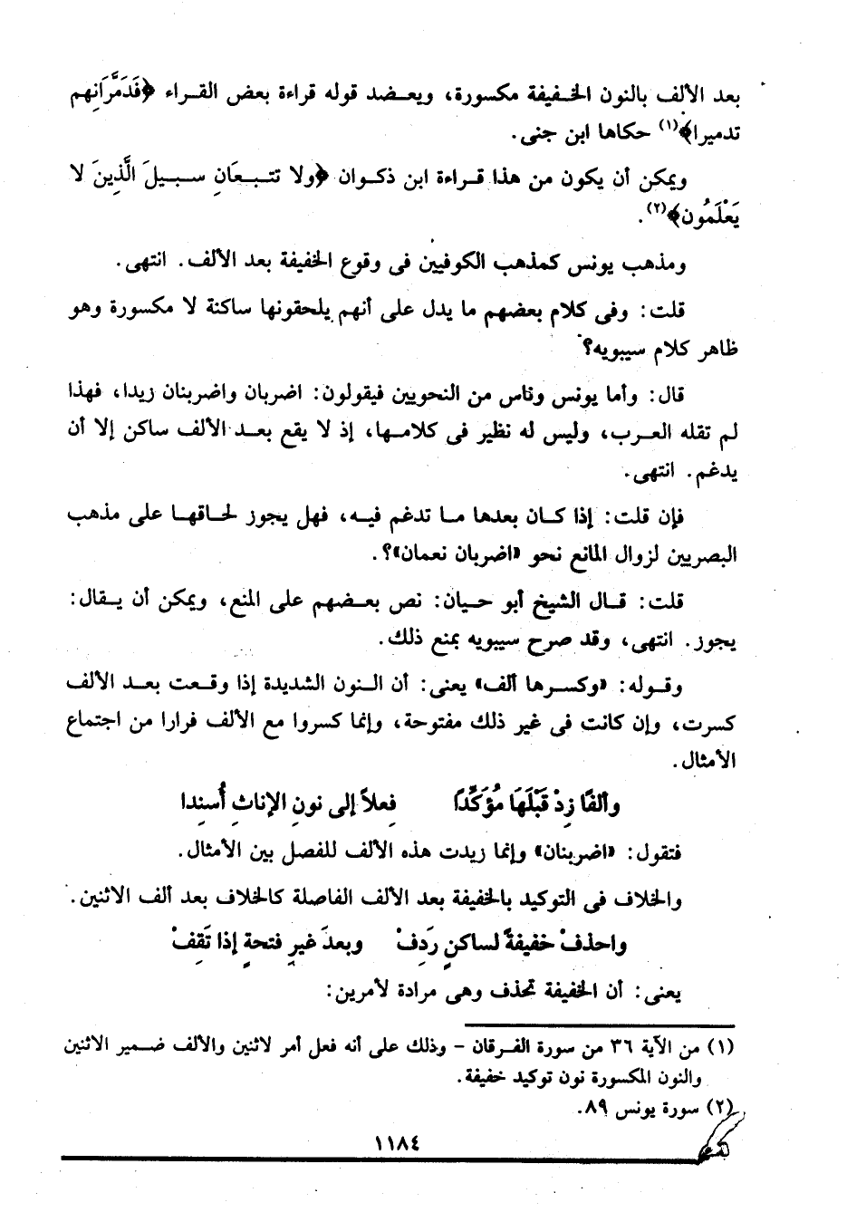 فتقول: "اضربنان" وإنما زيدت هذه الألف للفصل بين الأمثال.