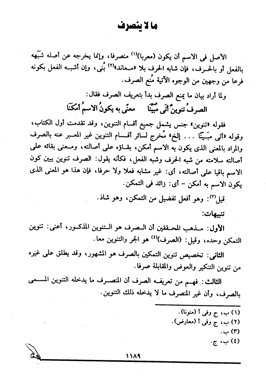 الأول: مذهب المحققين أن الصرف هو التنوين المذكور؛ أعني: تنوين التمكين وحده، وقيل: "الصرف"4 هو الجر والتنوين معا.