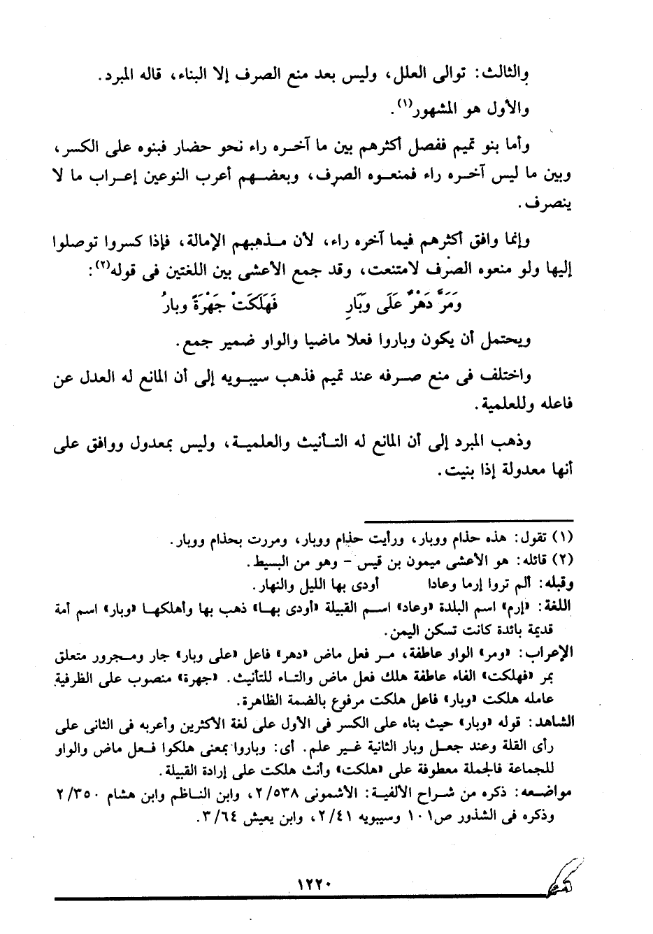 وإنما وافق أكثرهم فيما آخره راء؛ لأن مذهبهم الإمالة، فإذا كسروا توصلوا إليها ولو منعوه الصرف لامتنعت، وقد جمع الأعشى بين اللغتين في قوله2: