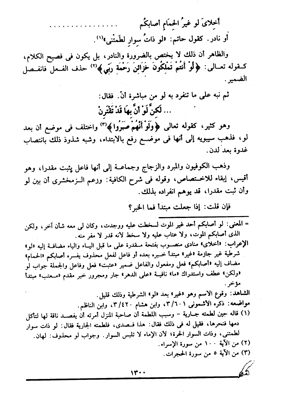 الشاهد: وقوع الاسم وهو "غير" بعد "لو" الشرطية، وذلك قليل.