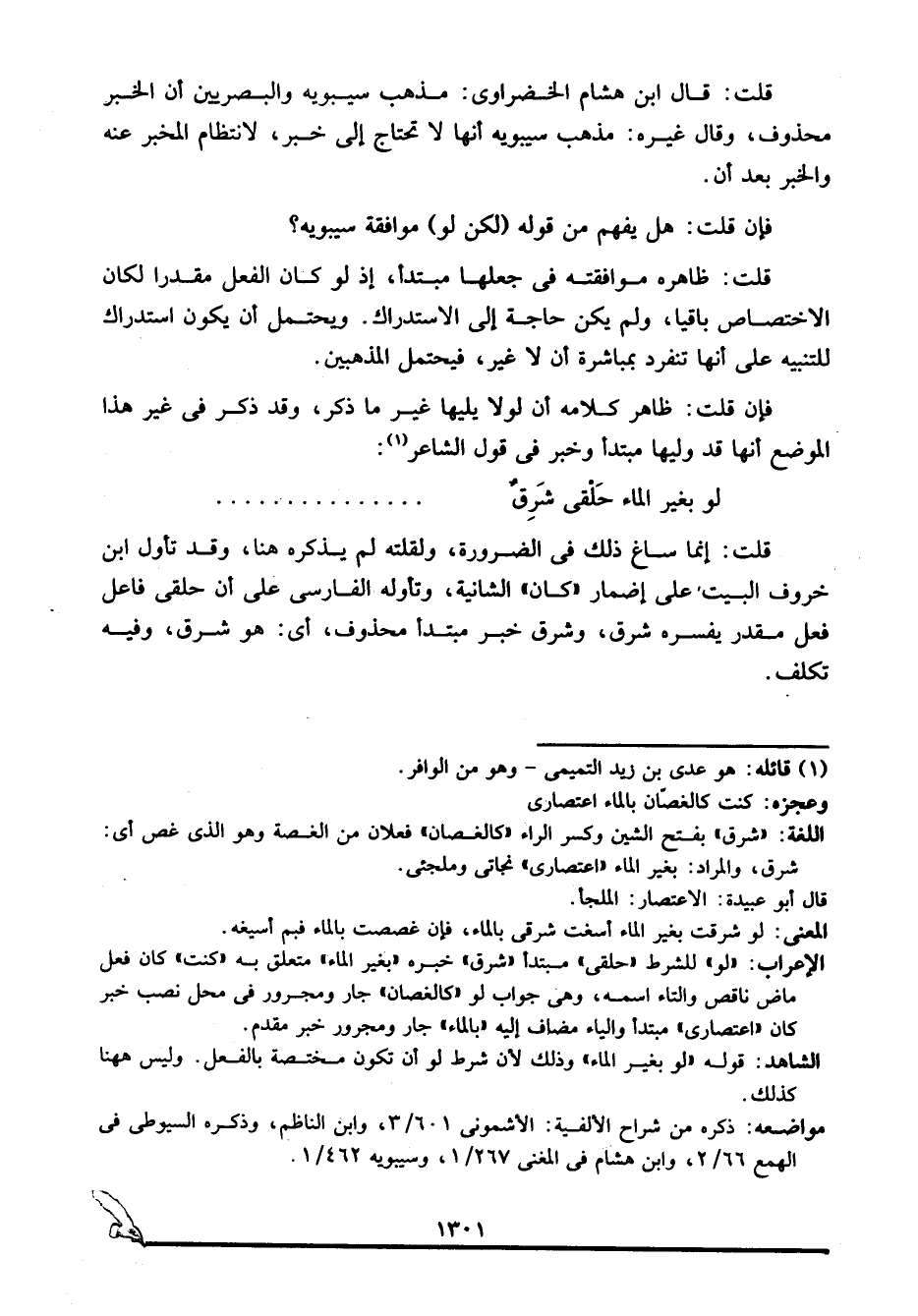 فإن قلت: هل يفهم من قوله: "لكن لو" موافقة سيبويه؟