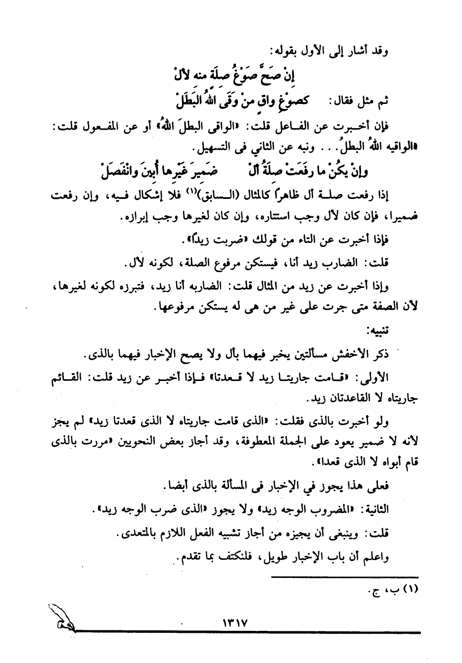 الثانية: "المضروب الوجه زيد" ولا يجوز "الذي ضرب الوجه زيد".