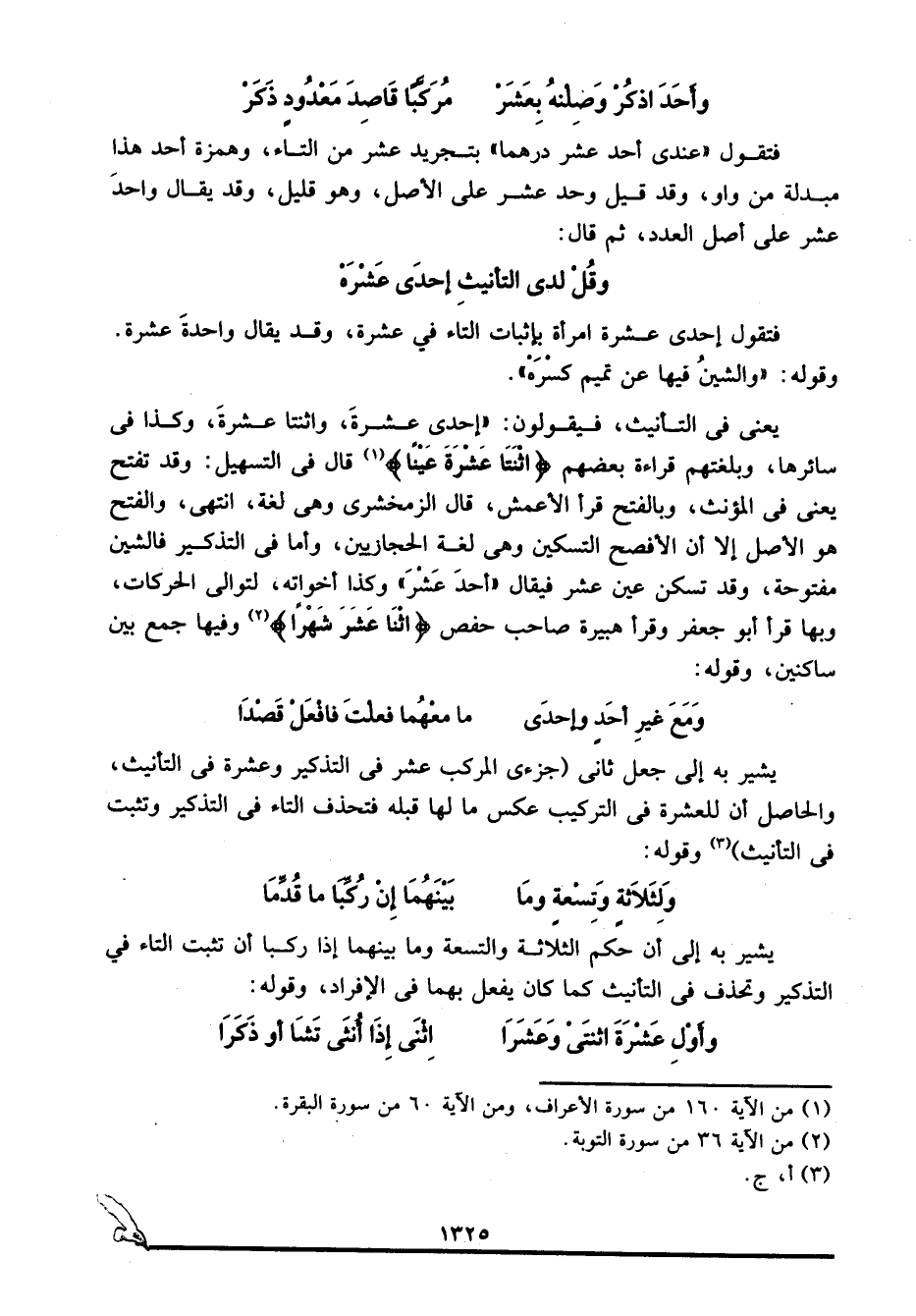 وأَوْلِ عَشْرَةَ اثنتَيْ وعَشَرَا ... اثنَيْ إذا أُنثى تَشَا أو ذَكَرا