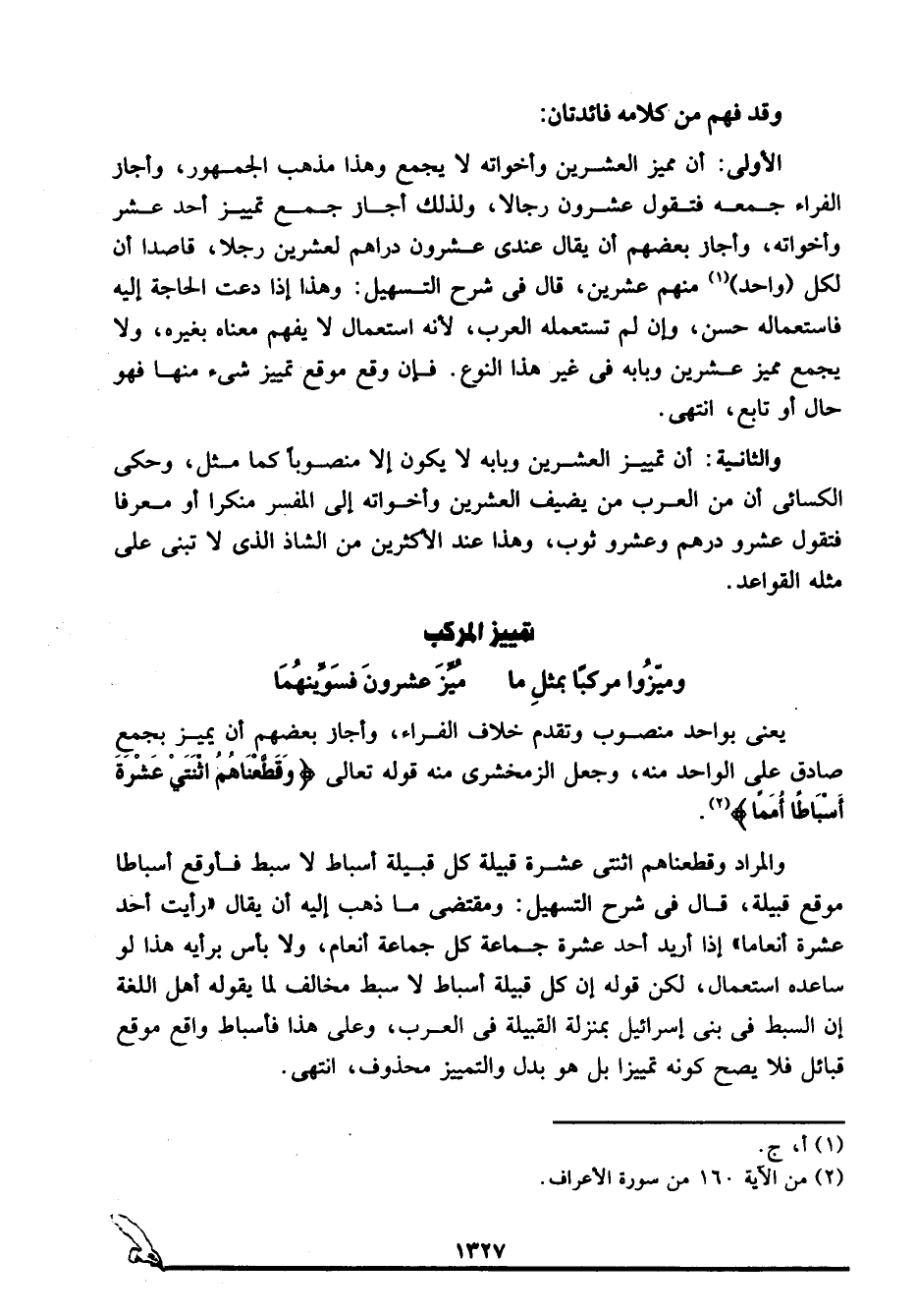 وميزُوا مركبا بمثل ما ... مُيِّزَ عشرون فسوِّينهُمَا