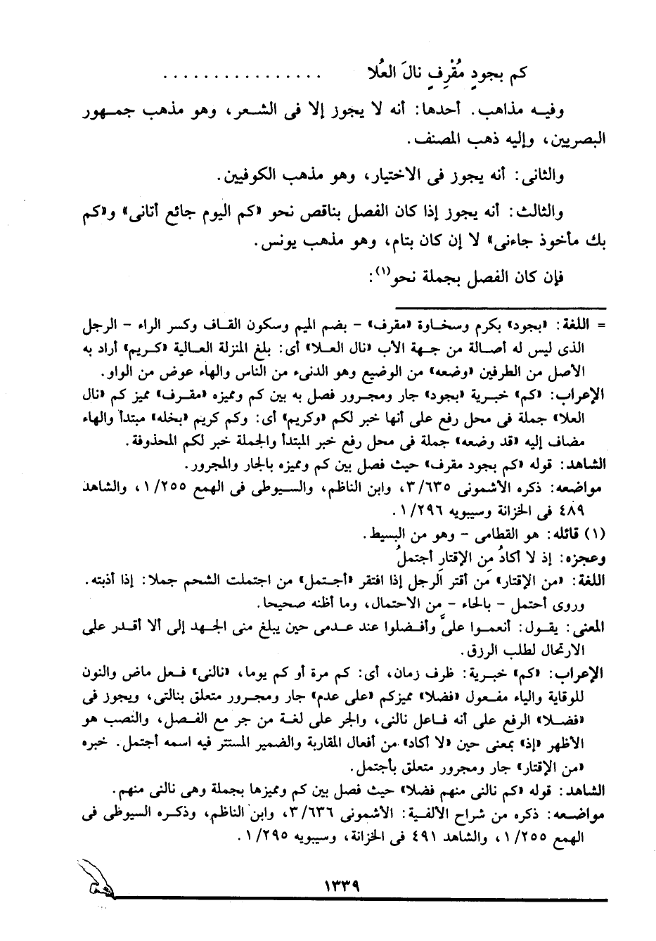 الشاهد: قوله: "كم بجود مقرف" حيث فصل بين كم ومميزه بالجار والمجرور.