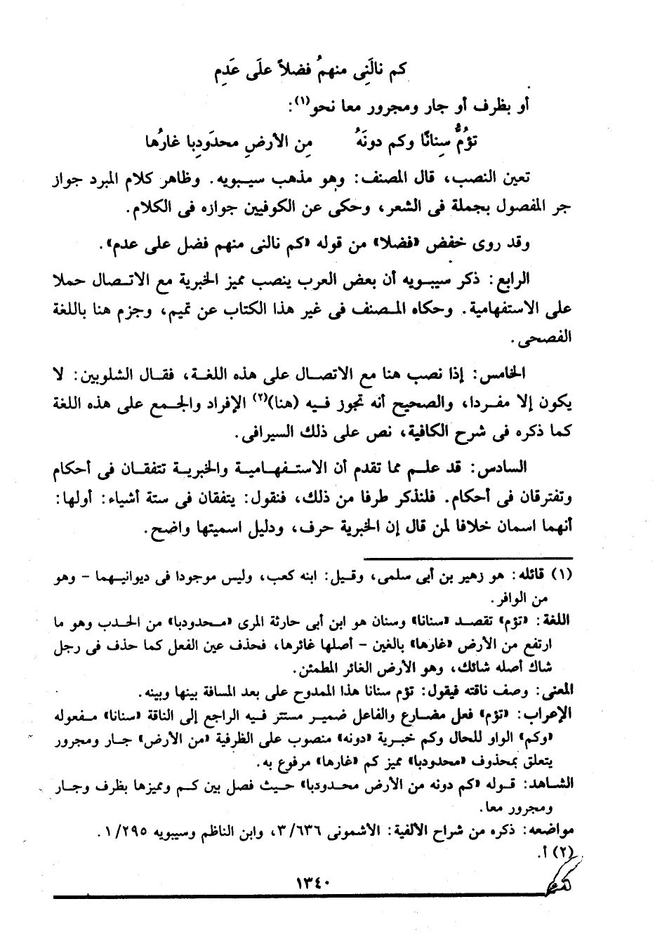 الشاهد: قوله: "كم دونه من الأرض محدودبا" حيث فصل بين كم ومميزها بظرف وجار ومجرور معا.