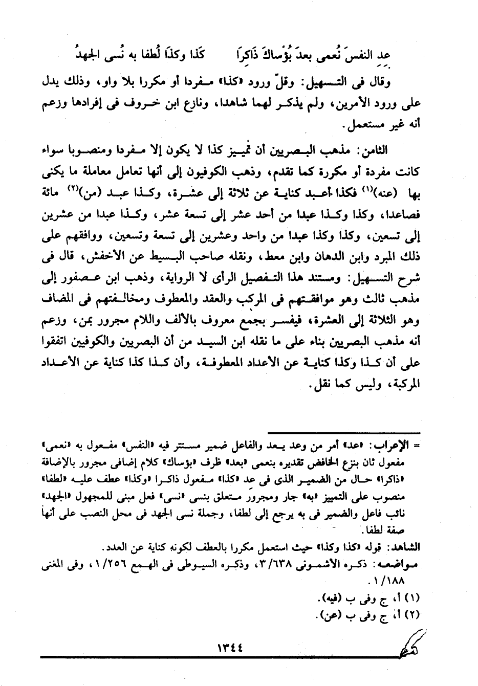 الشاهد: قوله: "كذا وكذا" حيث استعمل مكررا بالعطف لكونه كناية عن العدد.